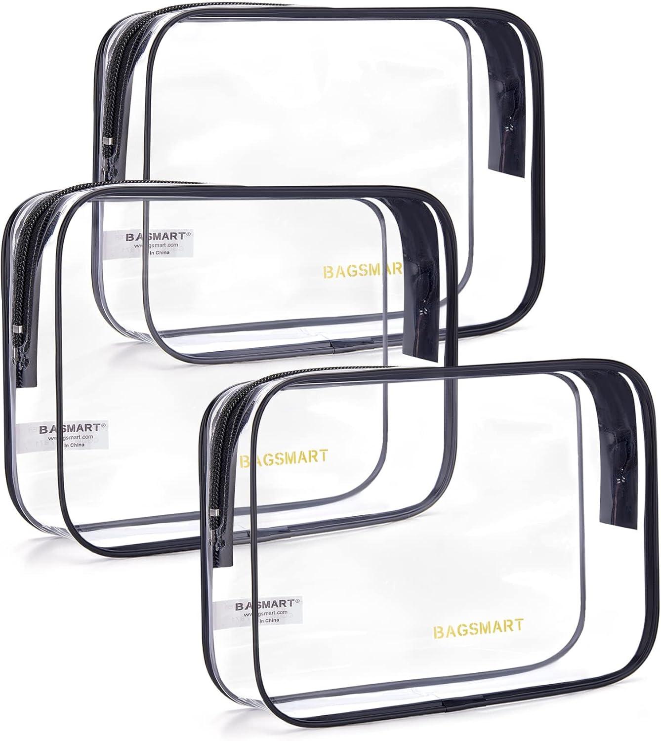 BAGSMART Clear Toiletry Bag, 2 Pack TSA Approved Travel Toiletry Bag Carry on Travel Accessories Bag Airport Airline Quart Size Bags Water Repellent Makeup Cosmetic Bag for Women (Black-2pcs)(Black)