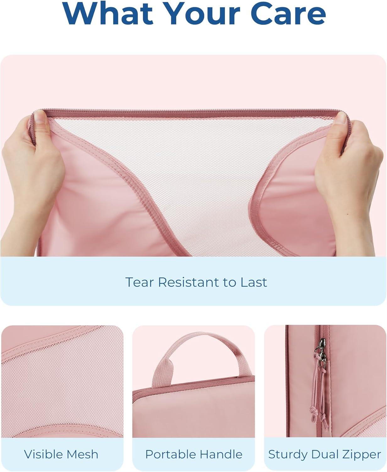 BAGSMART Compression Packing Cubes – 6 Set Travel Packing Cubes for Suitcases, Compression Suitcase Organizers with Shoe Bag(01-Baby Pink)