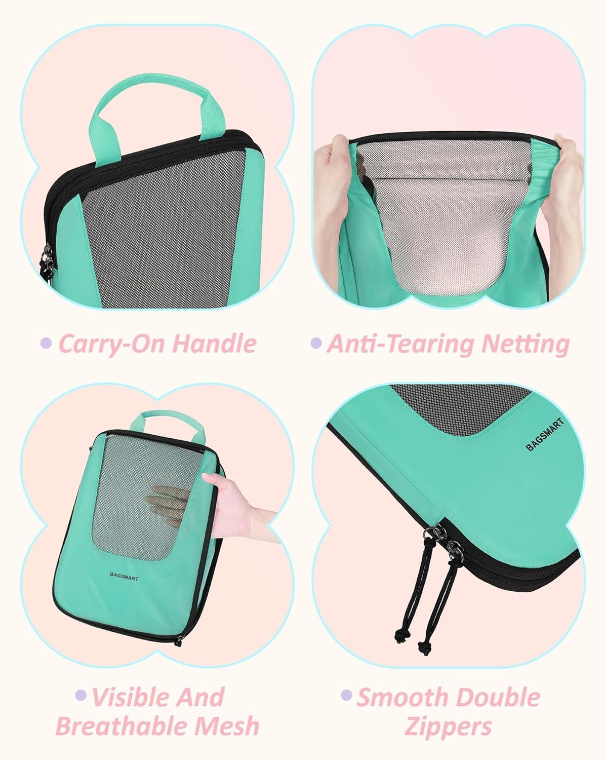 BAGSMART Compression Packing Cubes, Travel Cubes for Packing, 6/5/4 Set Suitcase Organizer Bags Set, Lightweight Packing Organizers(J-Lagoon Blue)