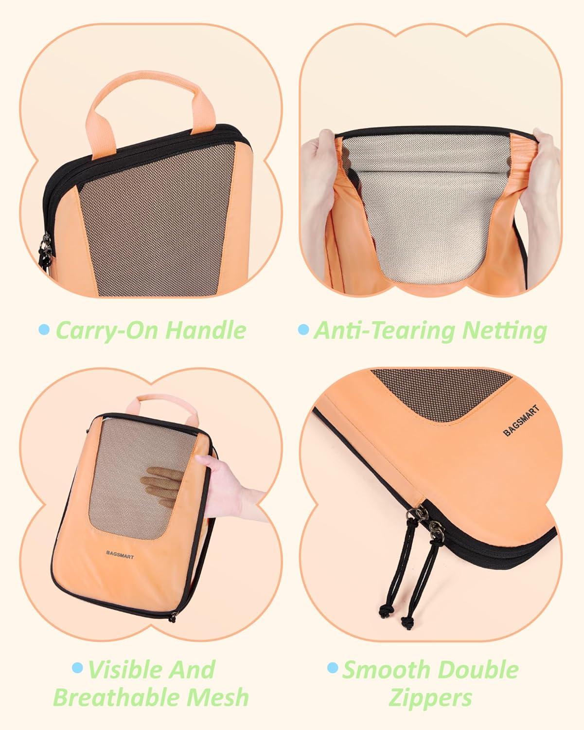 BAGSMART Compression Packing Cubes, Travel Cubes for Packing, 6/5/4 Set Suitcase Organizer Bags Set, Lightweight Packing Organizers(L-Sunset Oranger)
