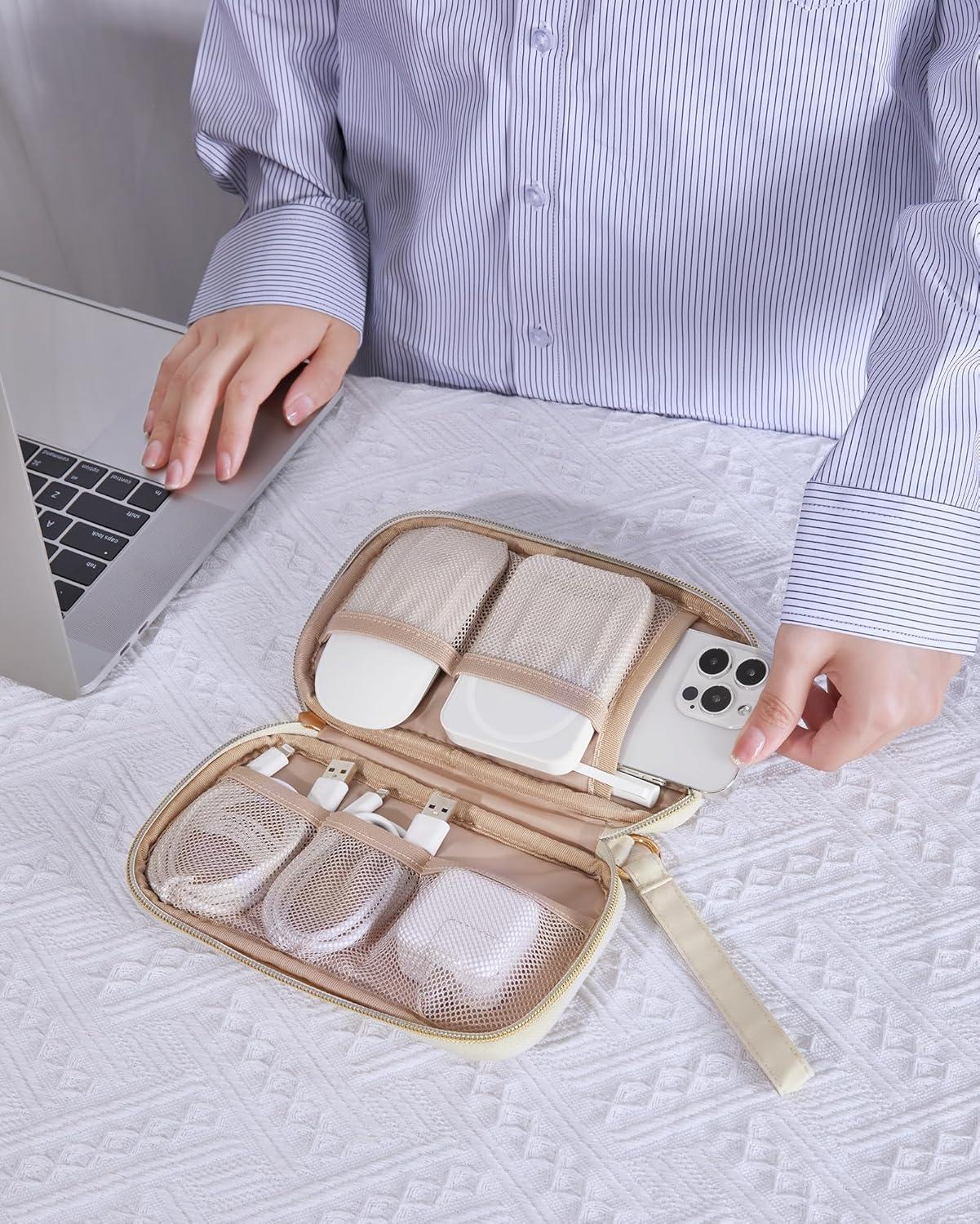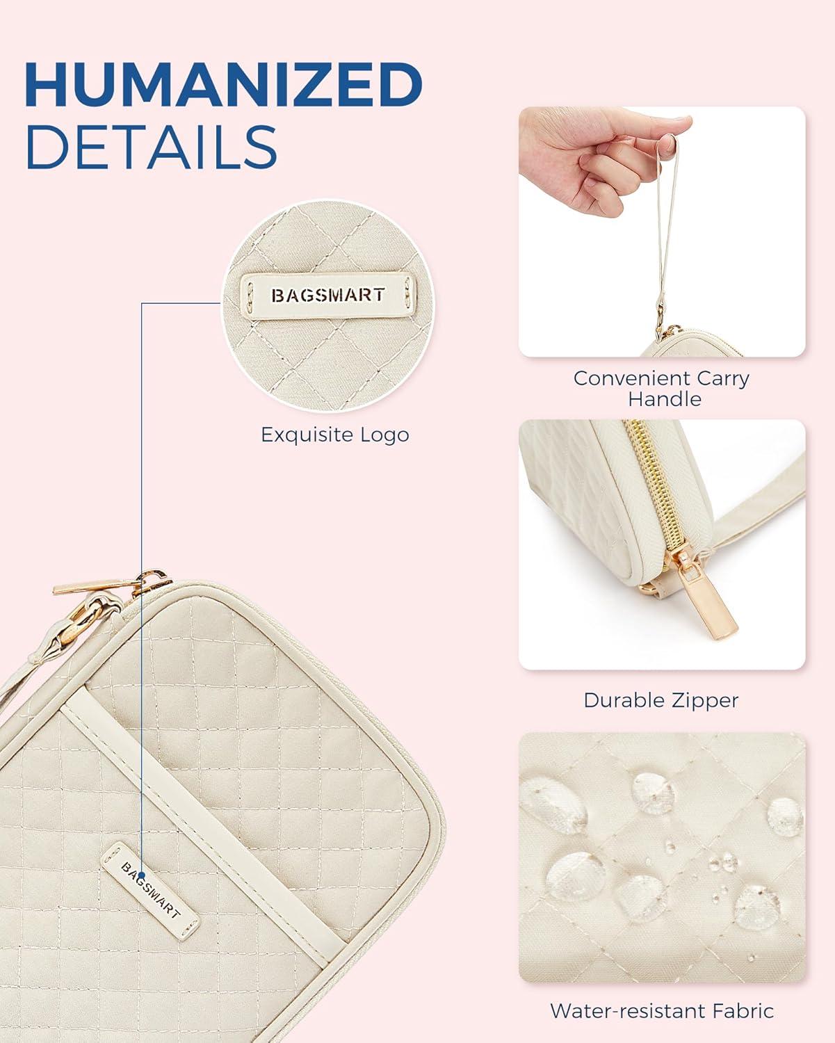 BAGSMART Cord Organizer Travel Cable Organizer Bag Tech Electronic Organizer Travel Case, Travel Essentials for Charger, Cable, Phone, Flash drive, Single Layer – Beige(Single Layer Quilted Beige)