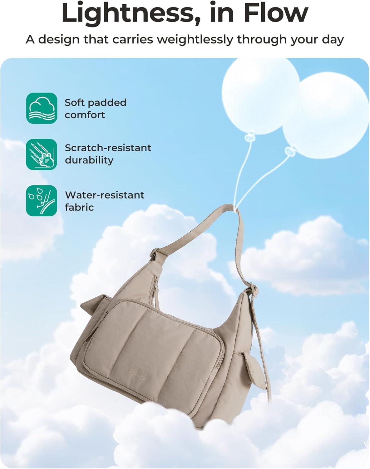 BAGSMART Crossbody Bags for Women, Small Puffer Purses for Women Daily/Travel, 6L Cute Fluffy Hobo Bag with Adjustable Strap(A-warm Sand)