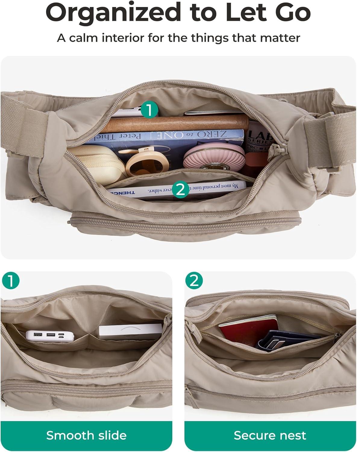 BAGSMART Crossbody Bags for Women, Small Puffer Purses for Women Daily/Travel, 6L Cute Fluffy Hobo Bag with Adjustable Strap(Iced Lavender)