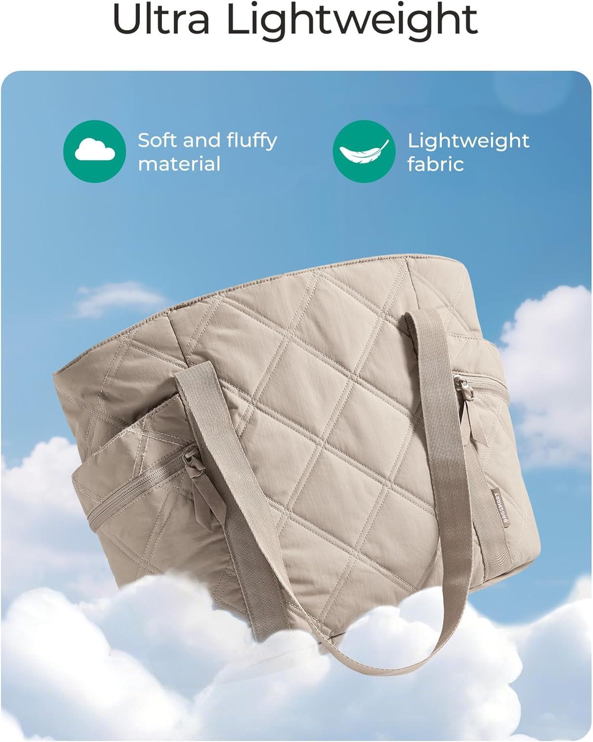 BAGSMART Crush Tote Bag for Women, 20L Puffer Work Tote with Zipper, Travel Essentials Quilted Nurse Hospital Bag(Camel)