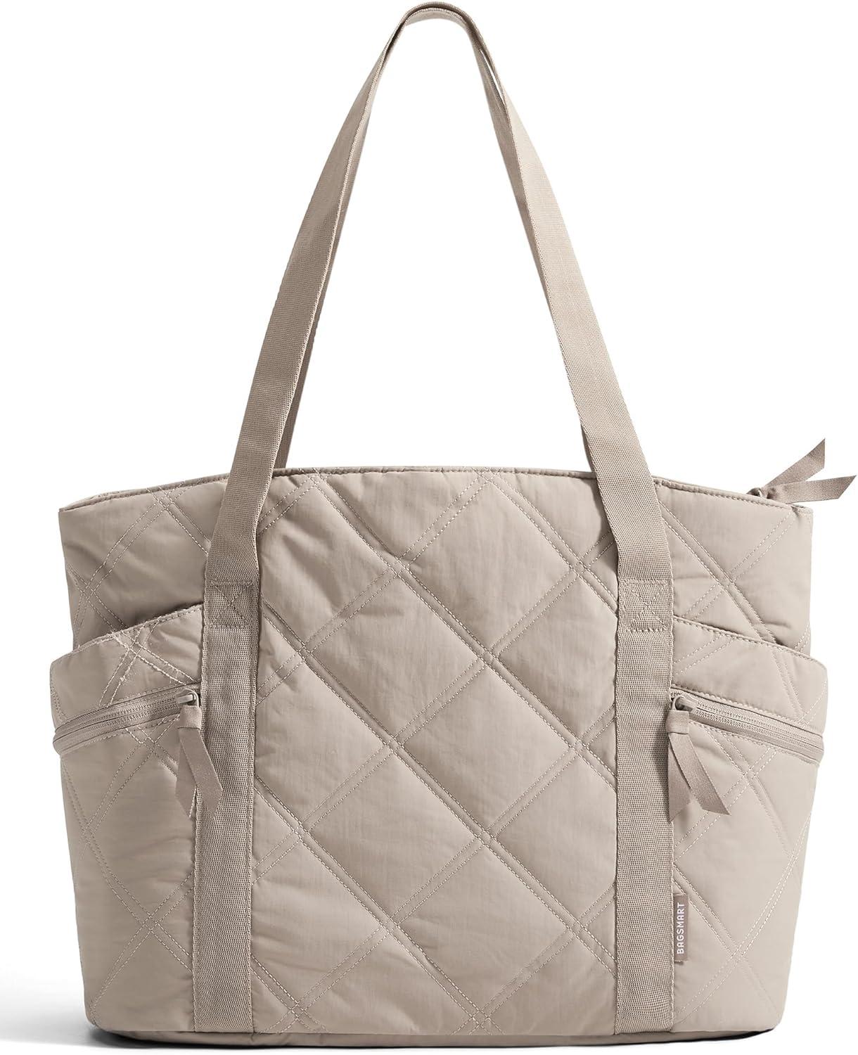 BAGSMART Crush Tote Bag for Women, 20L Puffer Work Tote with Zipper, Travel Essentials Quilted Nurse Hospital Bag(Charcoal)