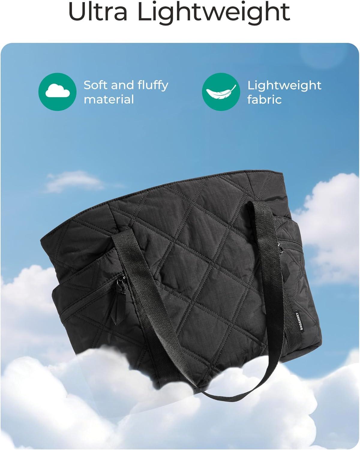 BAGSMART Crush Tote Bag for Women, 20L Puffer Work Tote with Zipper, Travel Essentials Quilted Nurse Hospital Bag(Charcoal)