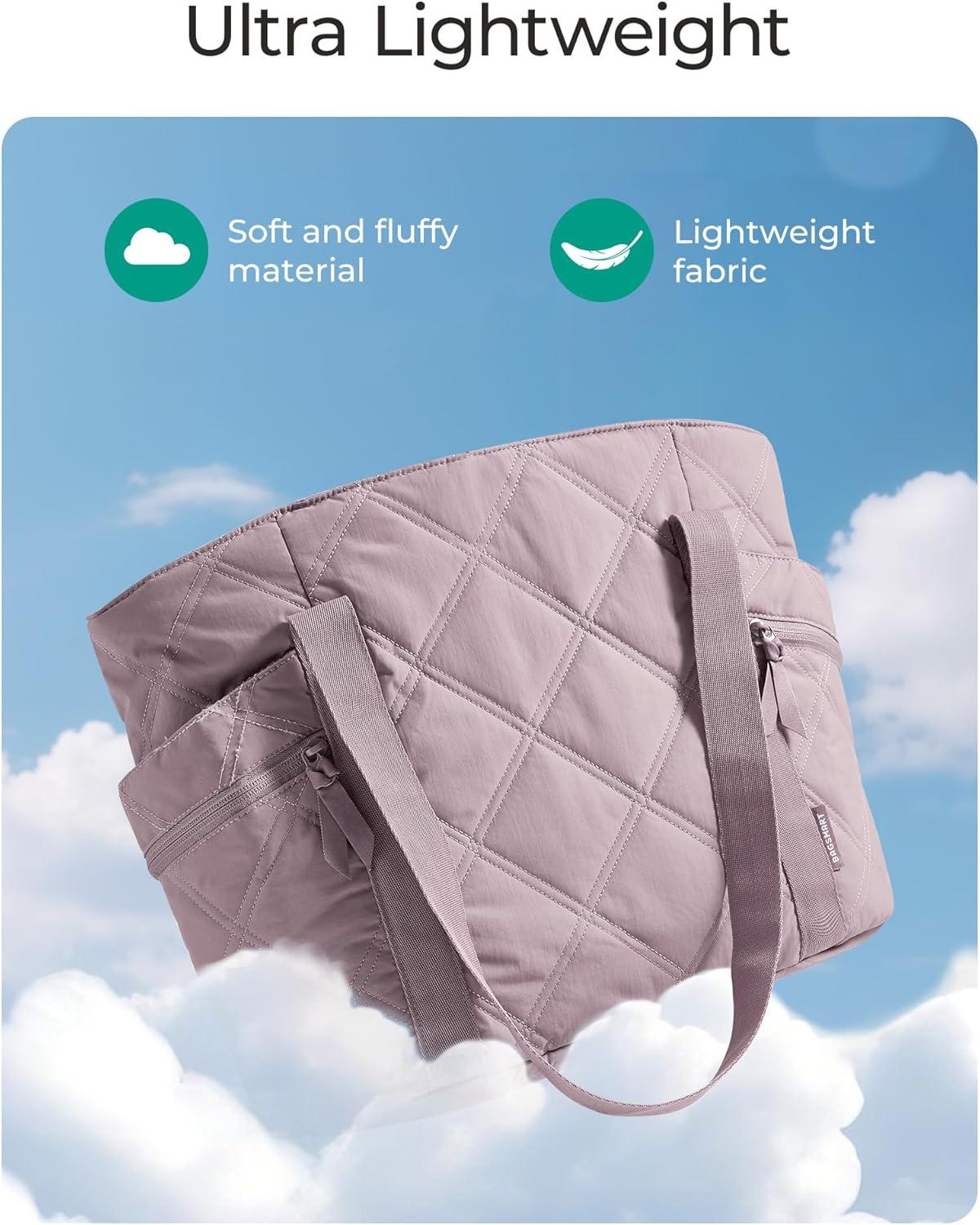 BAGSMART Crush Tote Bag for Women, 20L Puffer Work Tote with Zipper, Travel Essentials Quilted Nurse Hospital Bag(Lilac)