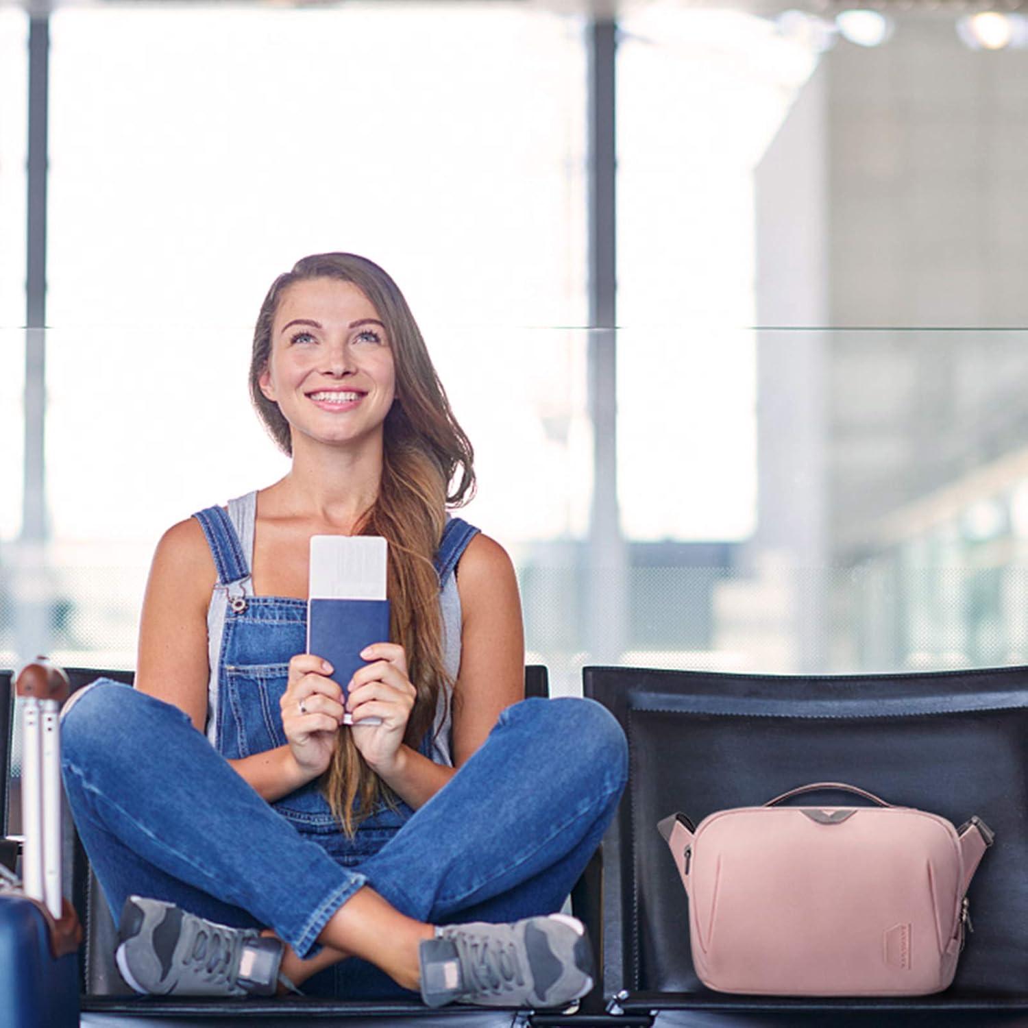 BAGSMART DSLR Camera Bag, Waterproof Crossbody Camera Case with Padded Shoulder Strap, Anti-Theft Bag, Pink(01-Pink)