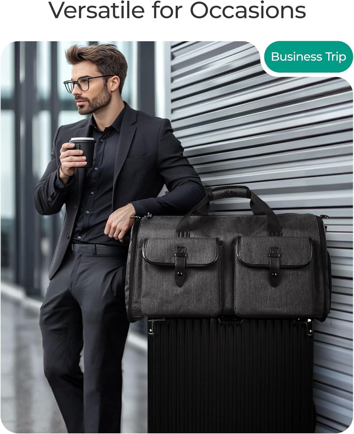 Versatile 2-in-1 Design: Elevate your travel game with our innovative garment bag, seamlessly transitioning from a spacious duffle to a sophisticated hanging garment bag. This dual-functionality makes it a must-have for jet setters, gym enthusiasts, and partygoers alike, catering to every aspect of your dynamic lifestyle