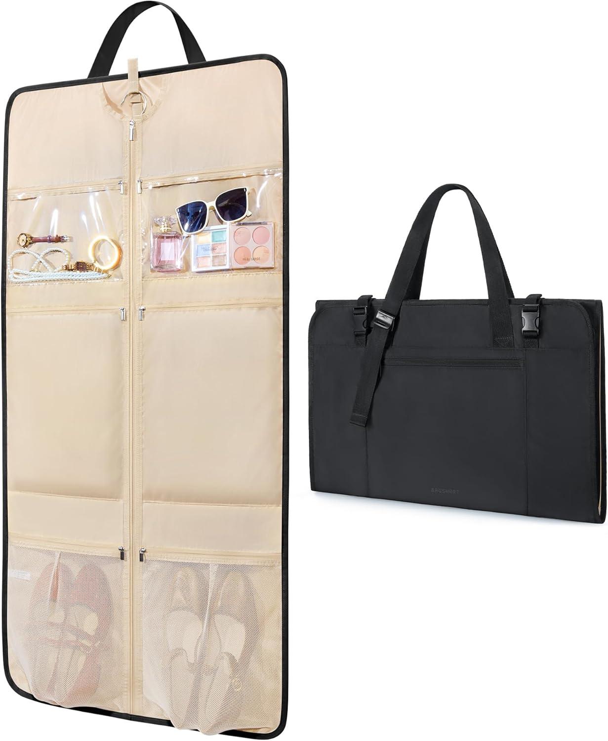 BAGSMART Garment Bags for Travel Foldable Carry on Suit Carrier for Hanging Clothes Stylish Dress Carrier Large Convertible Weekender Garment Bags for Women Men(Sleek Black)