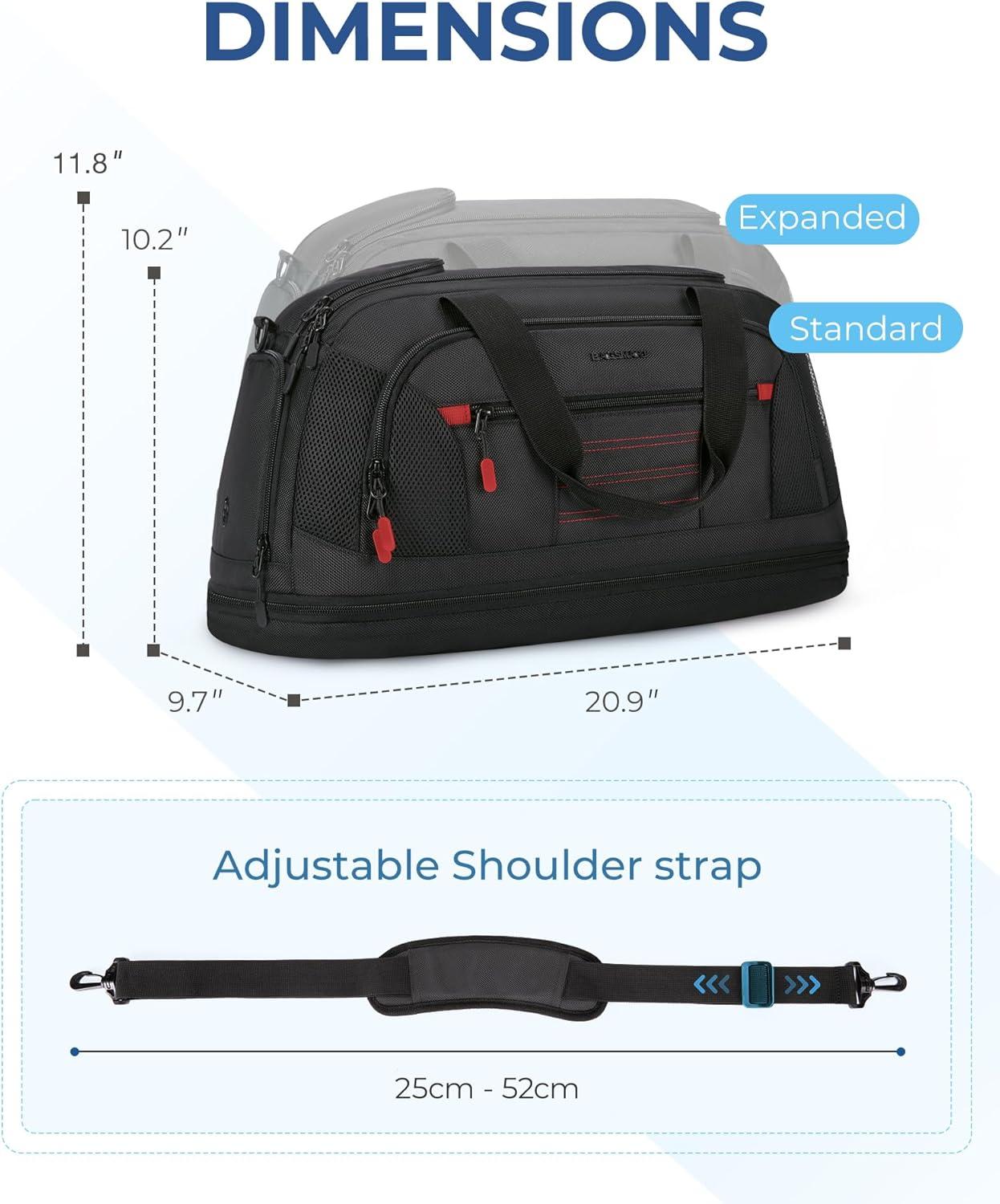 BAGSMART Gym Bag for Men, Expandable Lightweight Workout with Shoe Compartment & Wet Pocket, Water Resistant Weekender Bag, Black