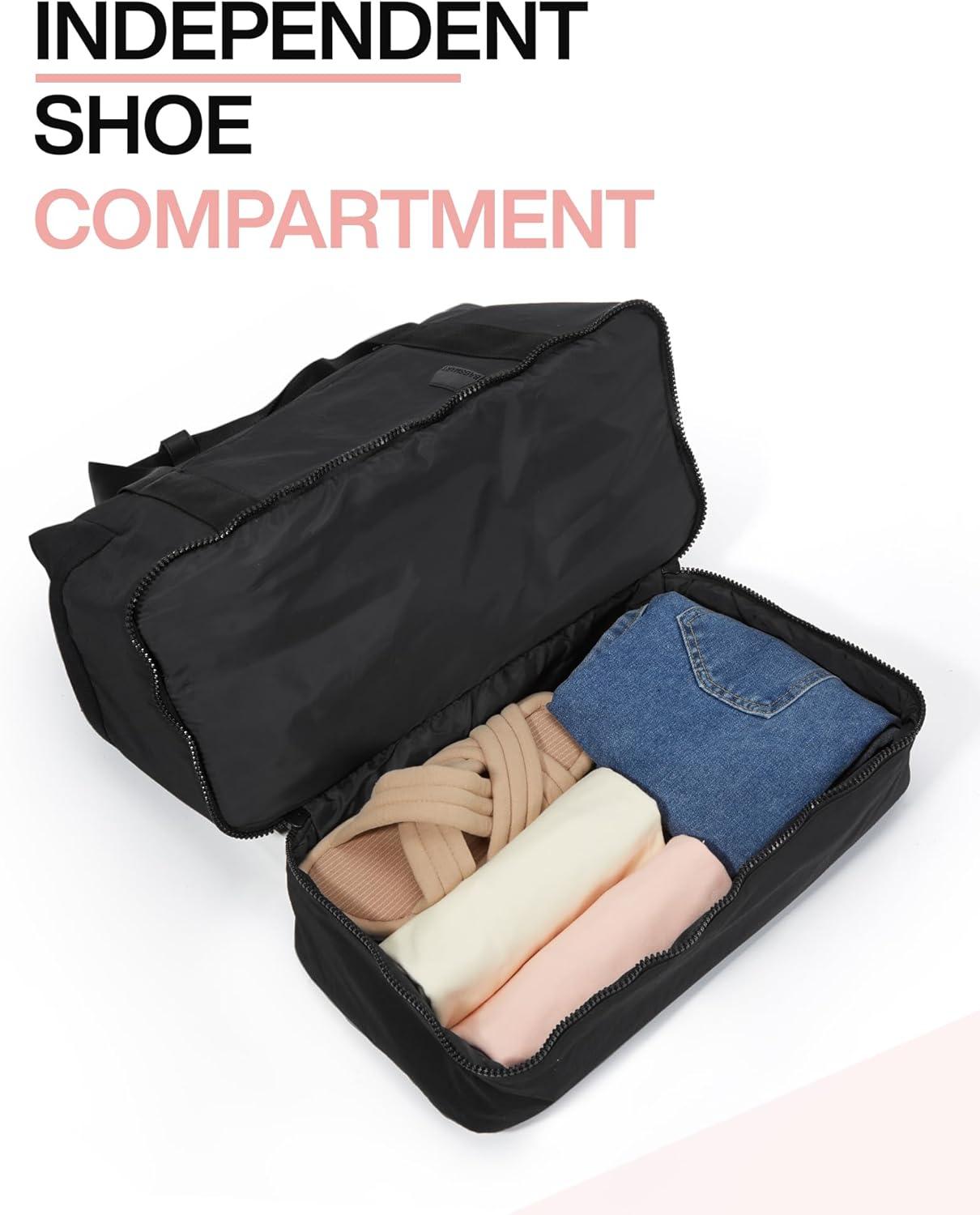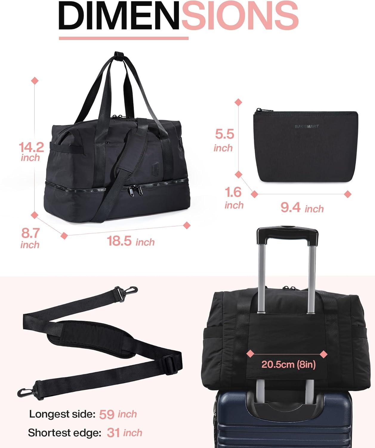 BAGSMART Gym Bag for Women, Carry on Weekender Overnight Bag, Travel Duffel Bags with Trolley Sleeve, Personal Item Travel Bag Tote Bag Workout Dance Bag(Pink,Medium)(Black)