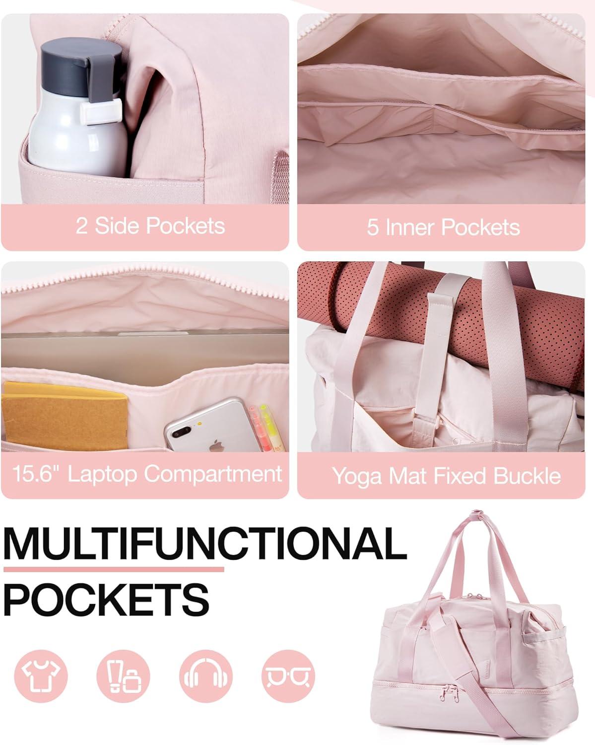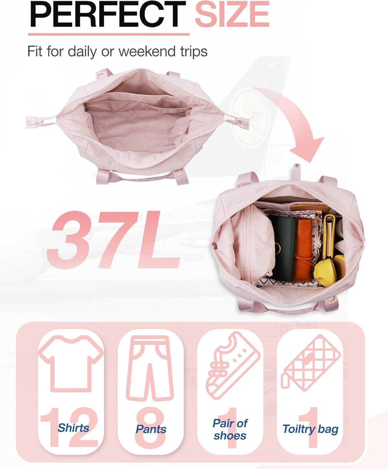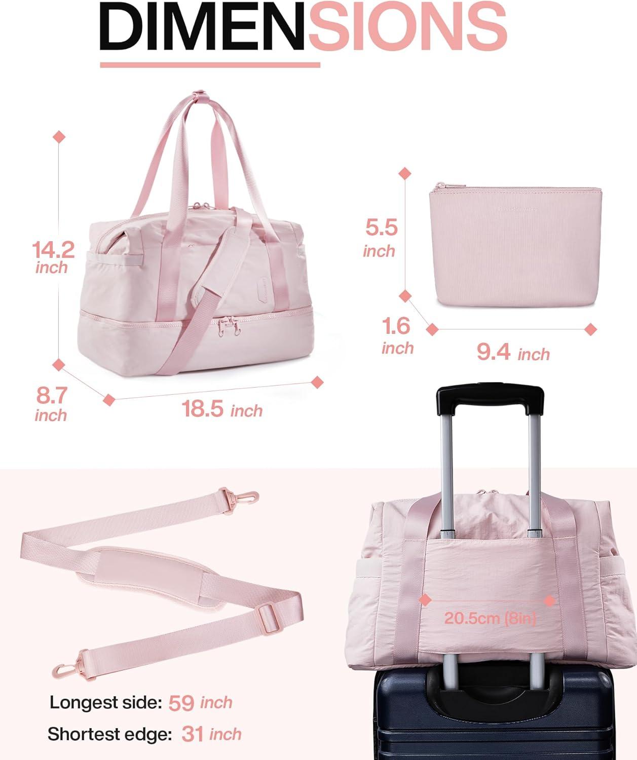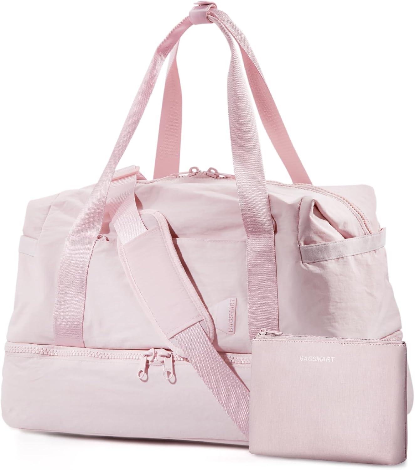 BAGSMART Gym Bag for Women, Carry on Weekender Overnight Bag, Travel Duffel Bags with Trolley Sleeve, Personal Item Travel Bag Tote Bag Workout Dance Bag(Pink,Medium)(Pink)