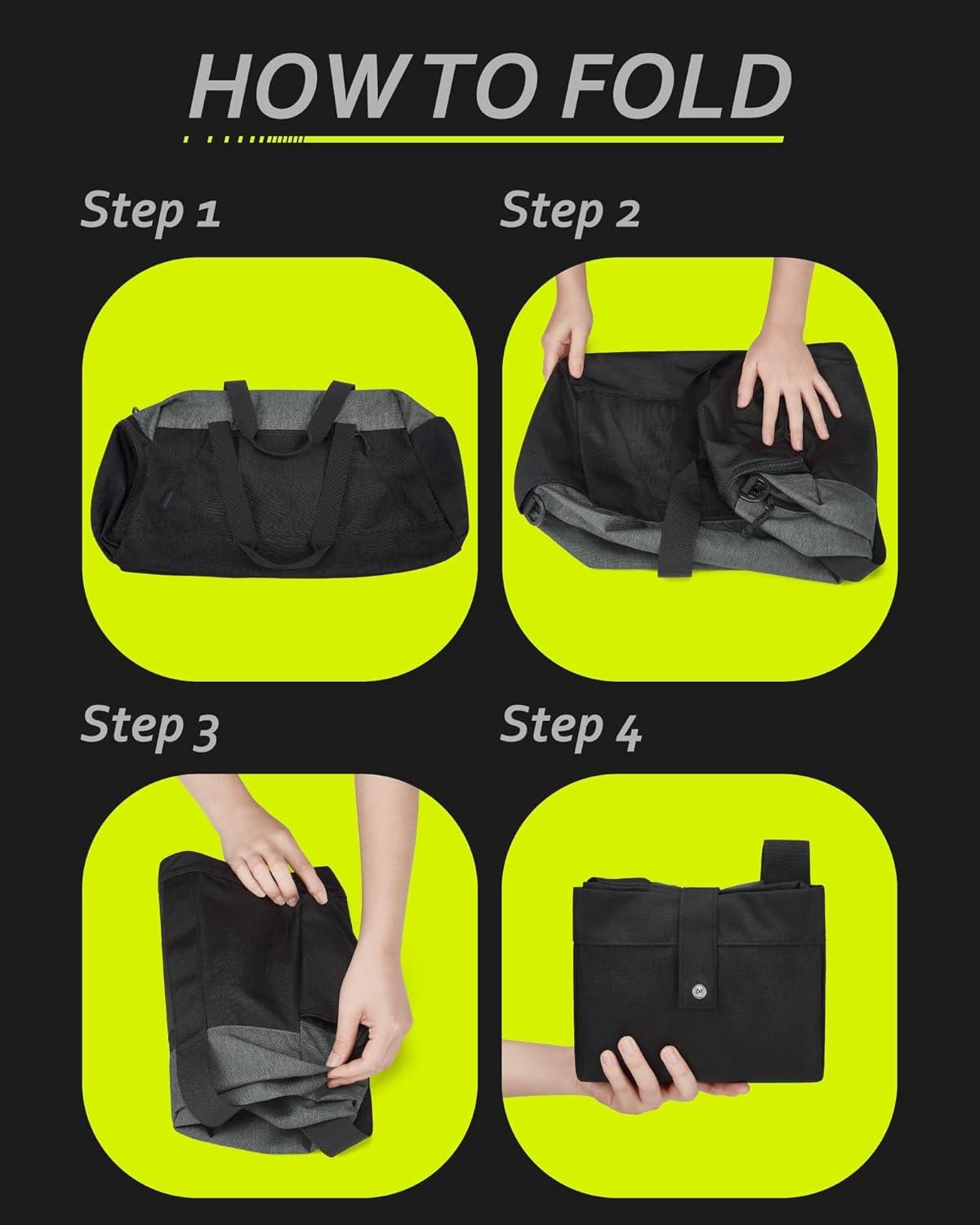 Foldable Gym Bag – The sports duffle bag can be quickly folded into a small package (1/20 of the regular size) and does not take up space when not in use. Lightweight material will not add extra weight burden to tired your after exercise. Durable tear-resistant fabric that can accompany you on every workout.