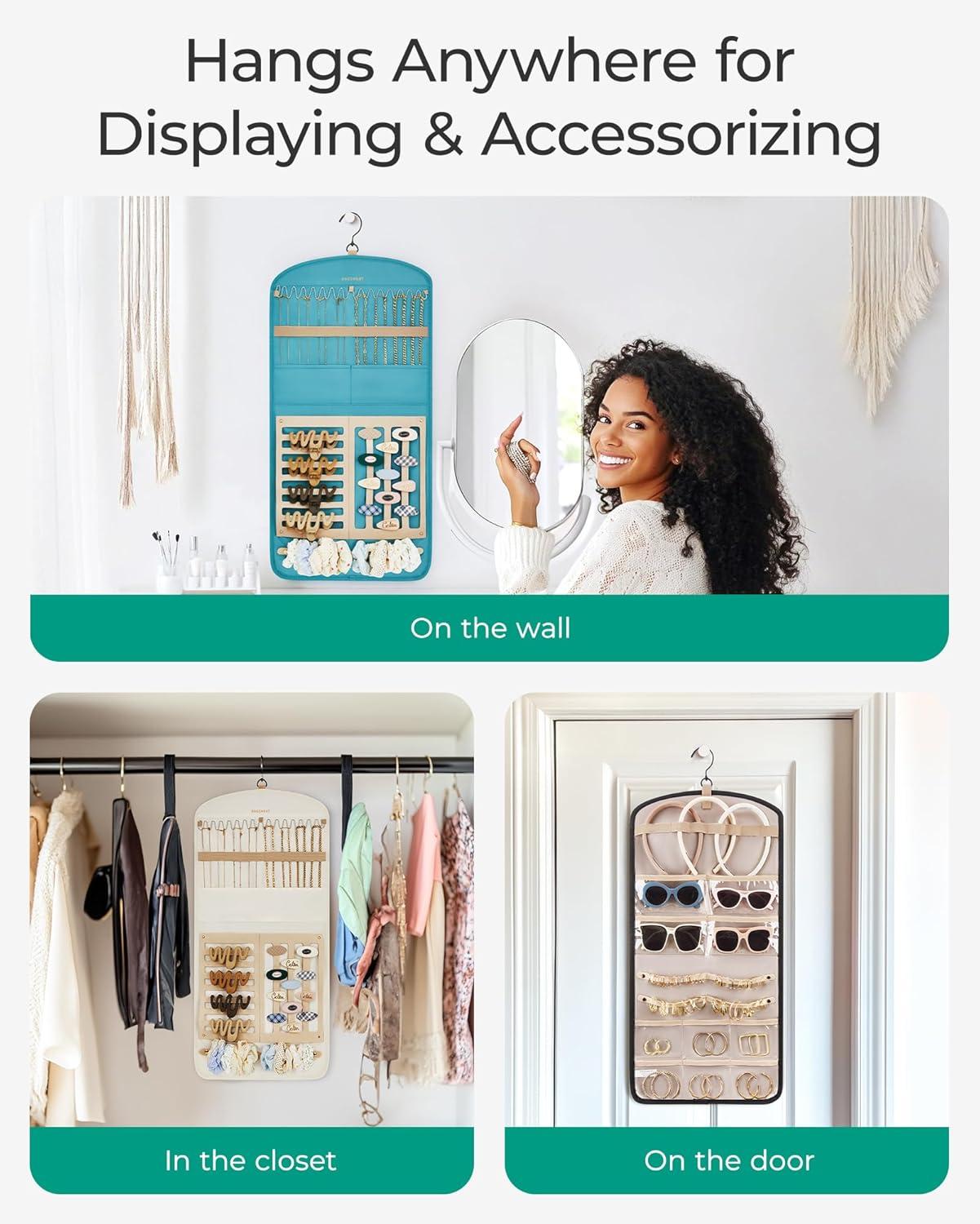 Hang any where:The jewelry organizers and storage, earring holder are extremely convenient for you. You can easily hang them on the wall, in the closet, or on the door, keeping all your accessories in one place. Whether it's necklaces, bracelets, or rings, they will be neatly organized, eliminating clutter. Displaying your beautiful accessories on these organizers will surely bring you a delightful day.