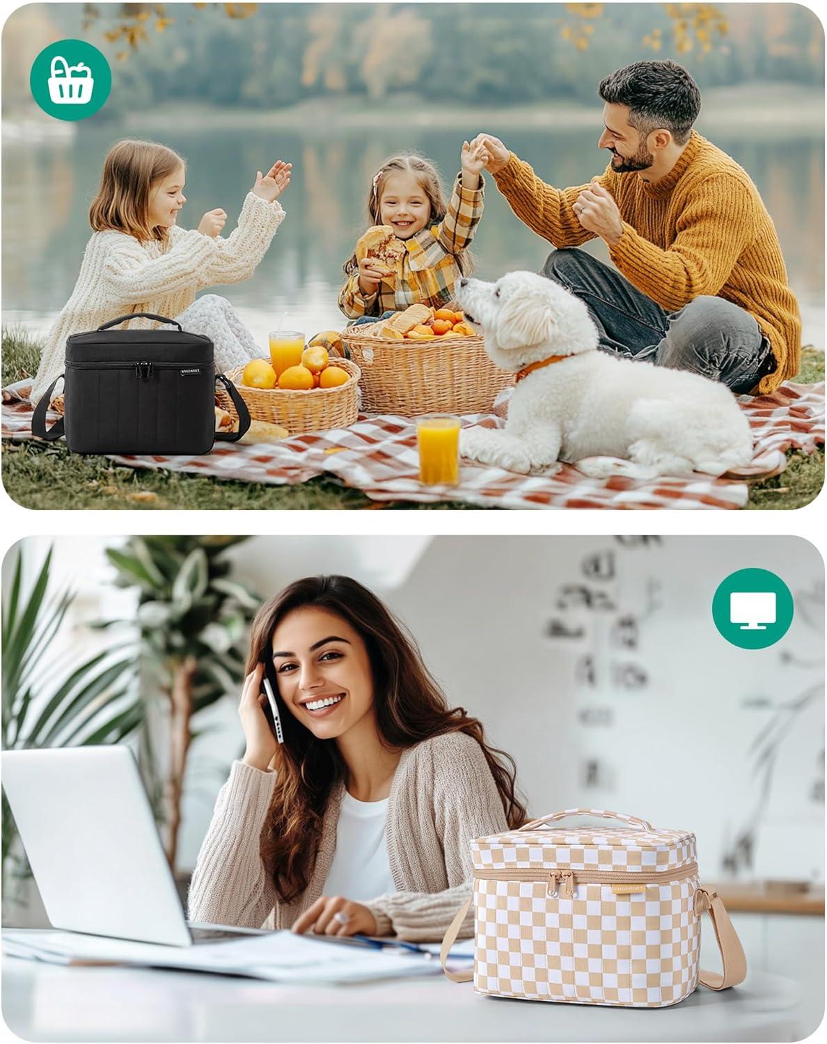 Ample Storage: Pack all your favorites with ease! Measuring 10″ L x 6.7″ W x 7.5″ H, with a capacity of 8L, this lunchbox bag can hold up to 11 cans of cola or your complete lunch spread, including sandwiches, salads, drinks, and fruits. Perfectly designed for those on the move, it ensures you have everything you need for a wonderful day out, whether at work, picnics, or travel.