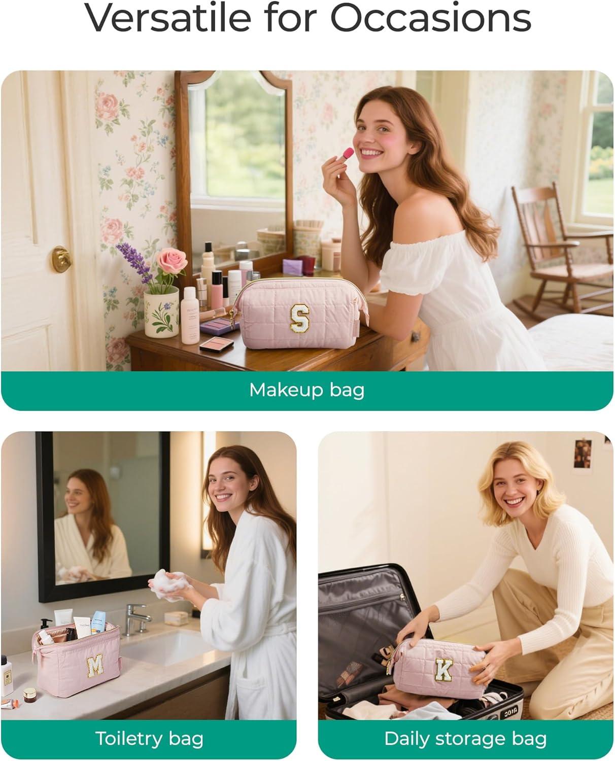 【CONVENIENT DESIGN】- The wide opening design of this makeup bag allows for effortless access to all your beauty essentials. Say goodbye to wasting time searching through tiny cosmetic bags. With this women's toiletry bag, you can quickly find your desired cosmetics like lipstick or eyeshadow