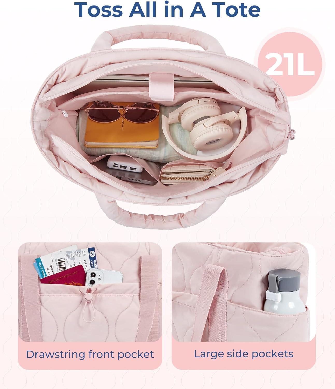 BAGSMART Puffer Tote Bag for Women, Quilted Travel Top Handle, Large Lightweight Shoulder Handbags with Zipper