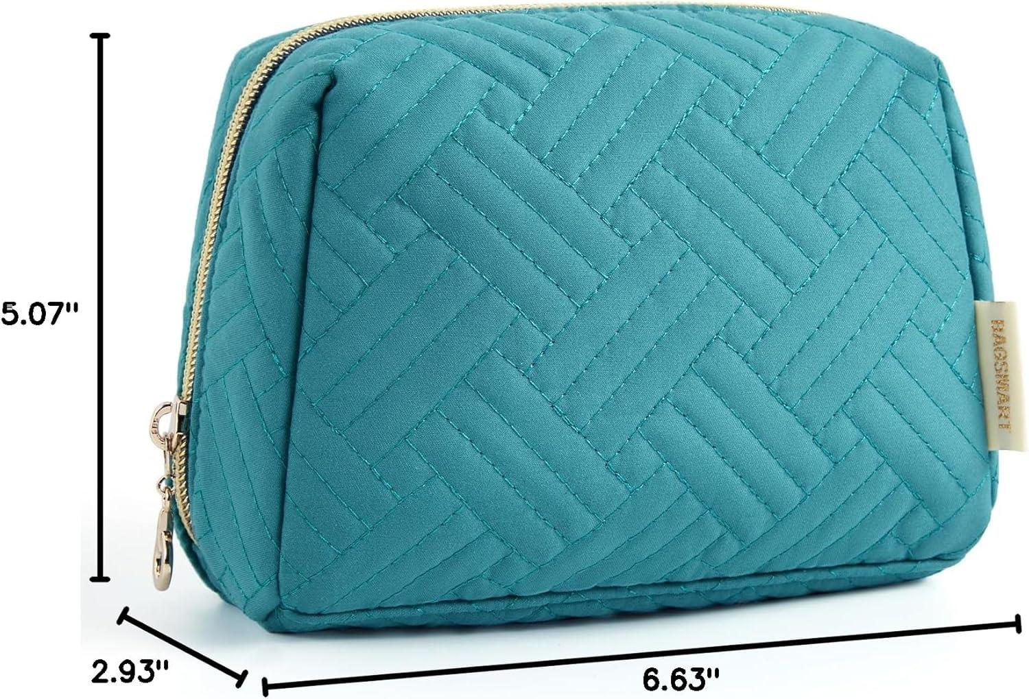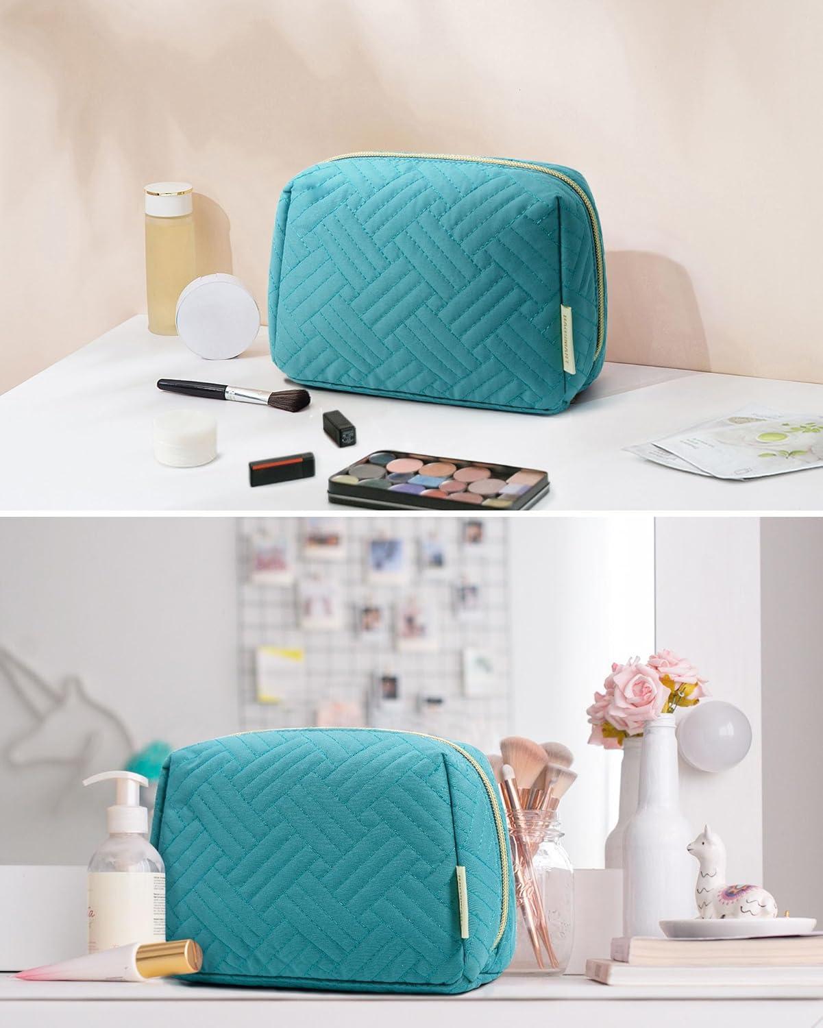 BAGSMART Puffy Makeup Bag, Wide Opening Cosmetic Bag Compact & Spacious, Water-Resistant Travel Organizer Pouches for Women (Baby Pink)(01-Teal Blue)