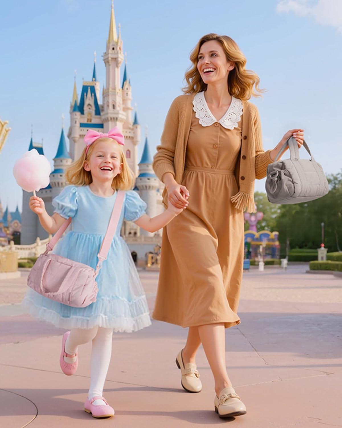 Commuting Shoulder Bag: Quick-grab side pocket on the small duffle for your phone, plus interior slots for cards and lip balm. Roomy enough for daily errands, baby essentials, or a mini makeup touch-up kit