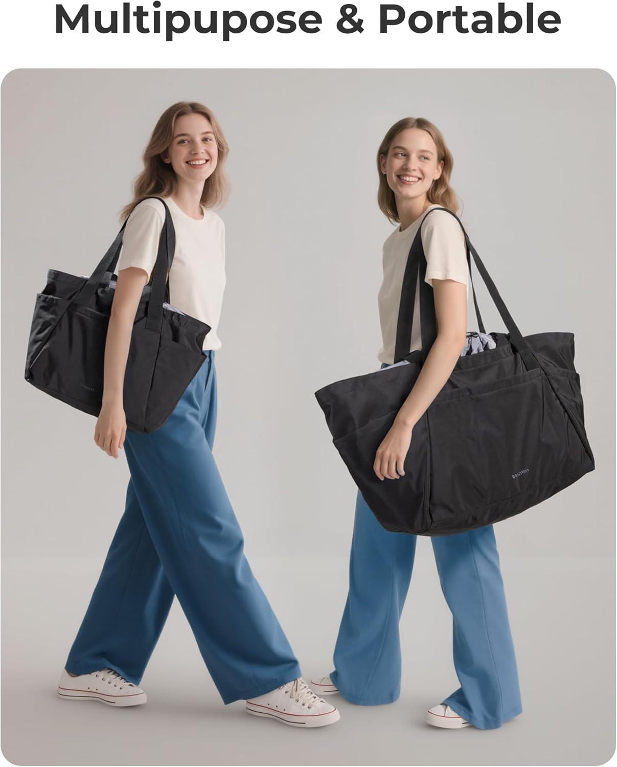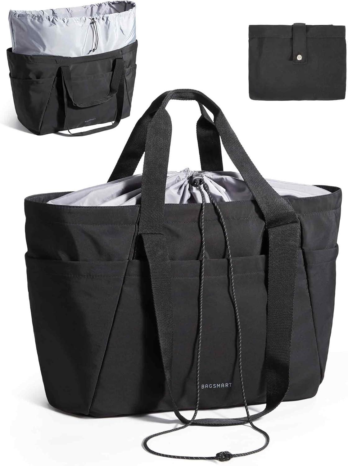 BAGSMART Reusable Grocery Bags, Large Beach Bag, Foldable Tote for Shopping Moving Holiday Travel Packing(32l-black)