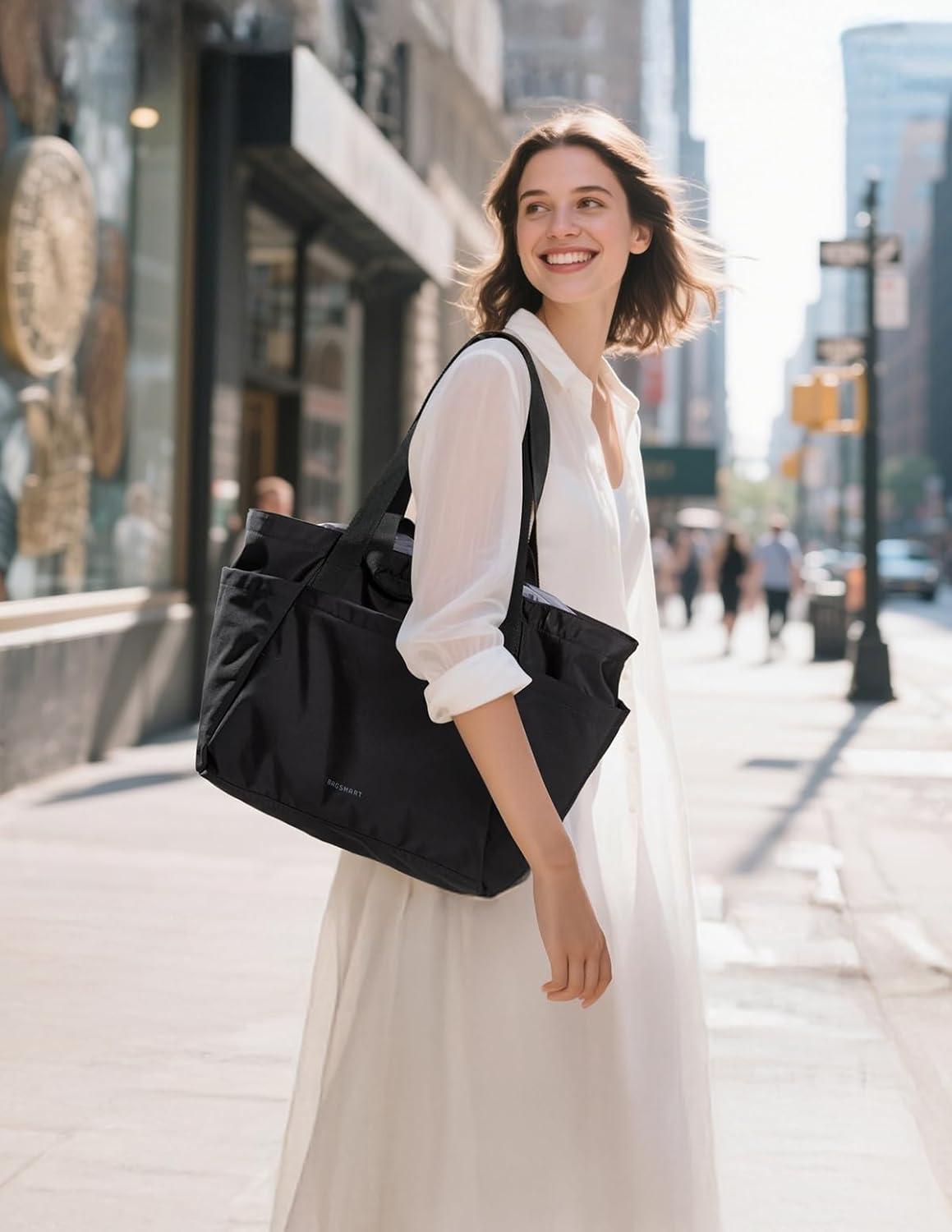 BAGSMART Small Tote Bag for Women, Crossbody Bag with Zipper, Crush Bow Purses for Travel Work College(Classic)