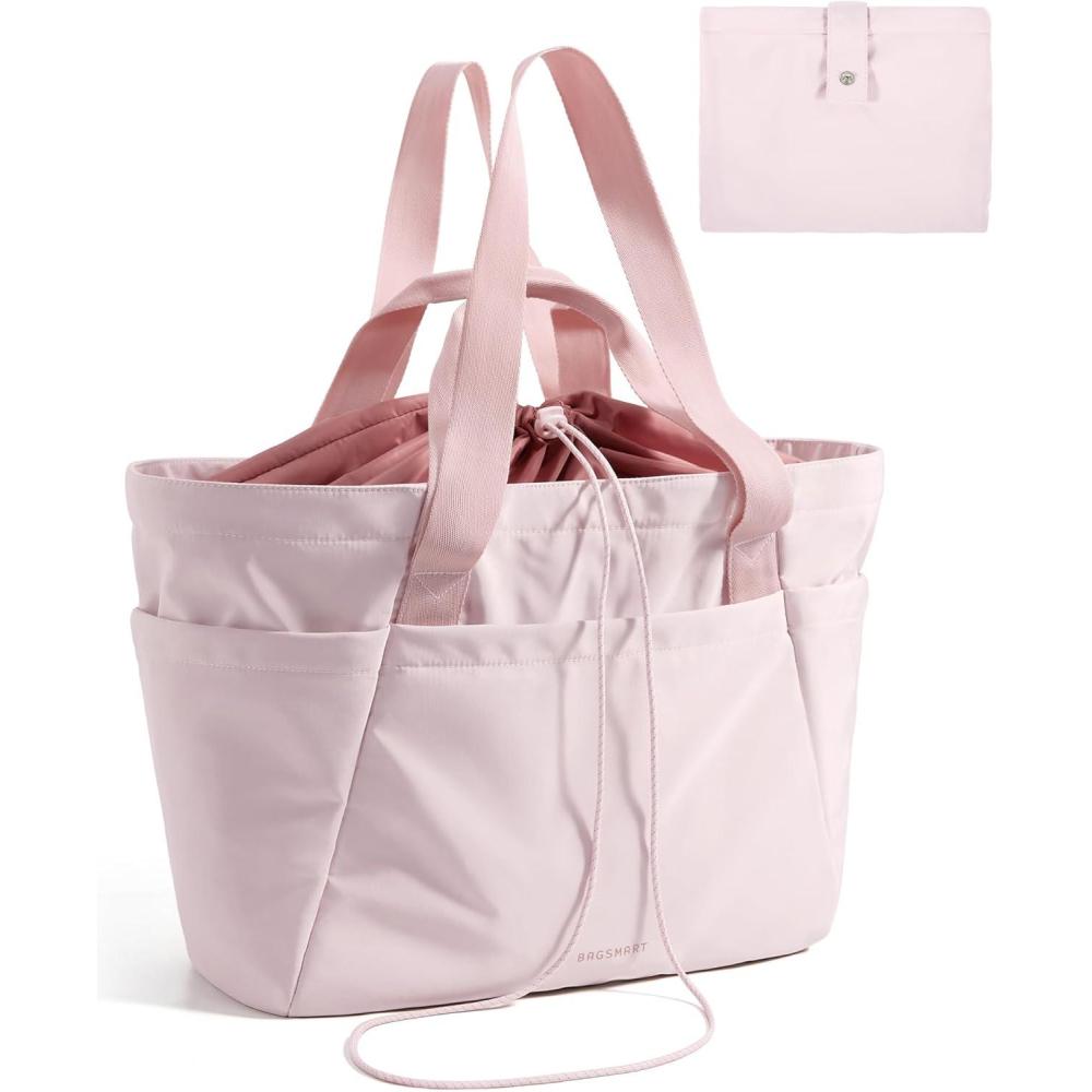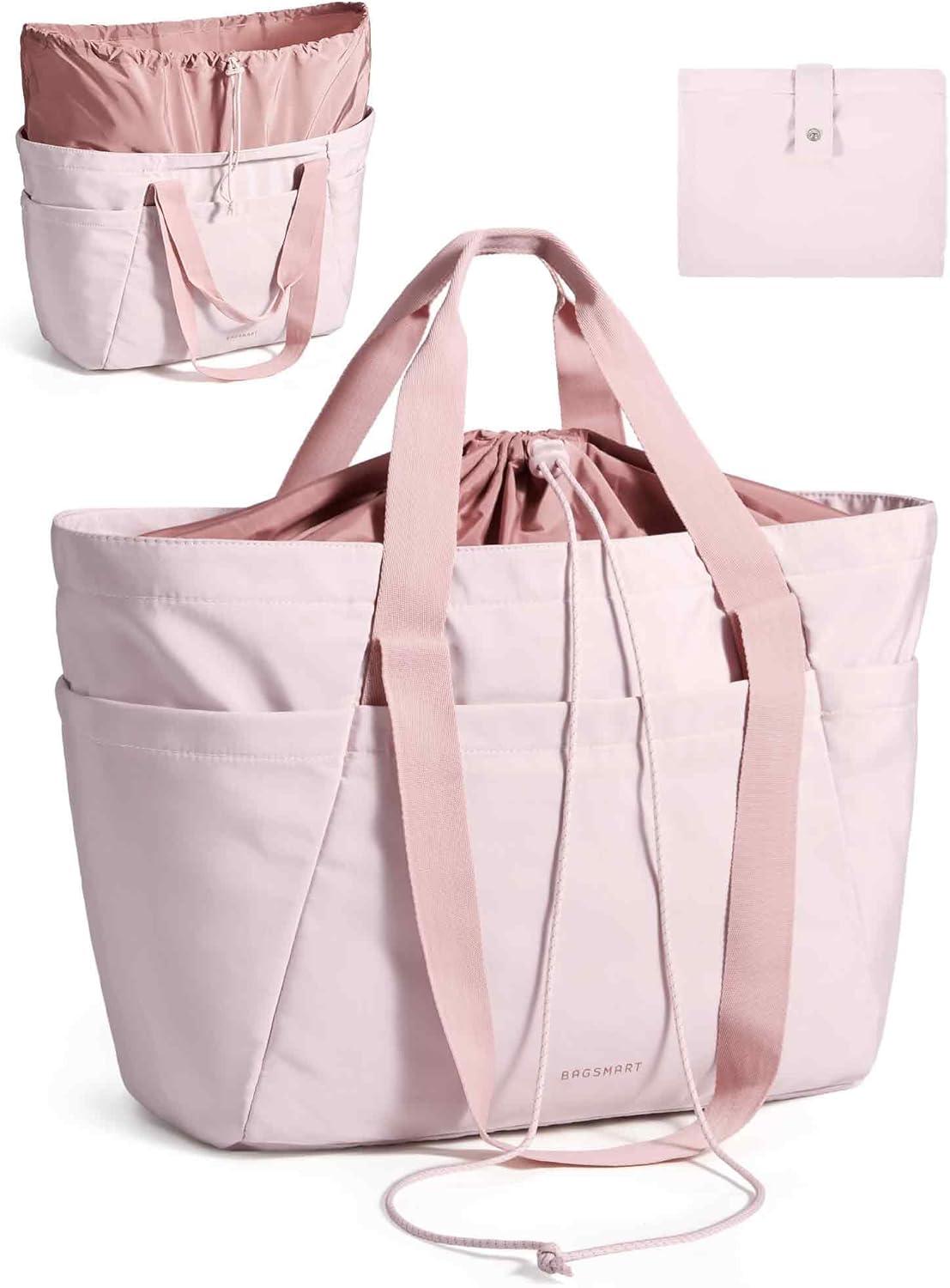 BAGSMART Reusable Grocery Bags, Large Beach Bag, Foldable Tote for Shopping Moving Holiday Travel Packing(32l-pink)