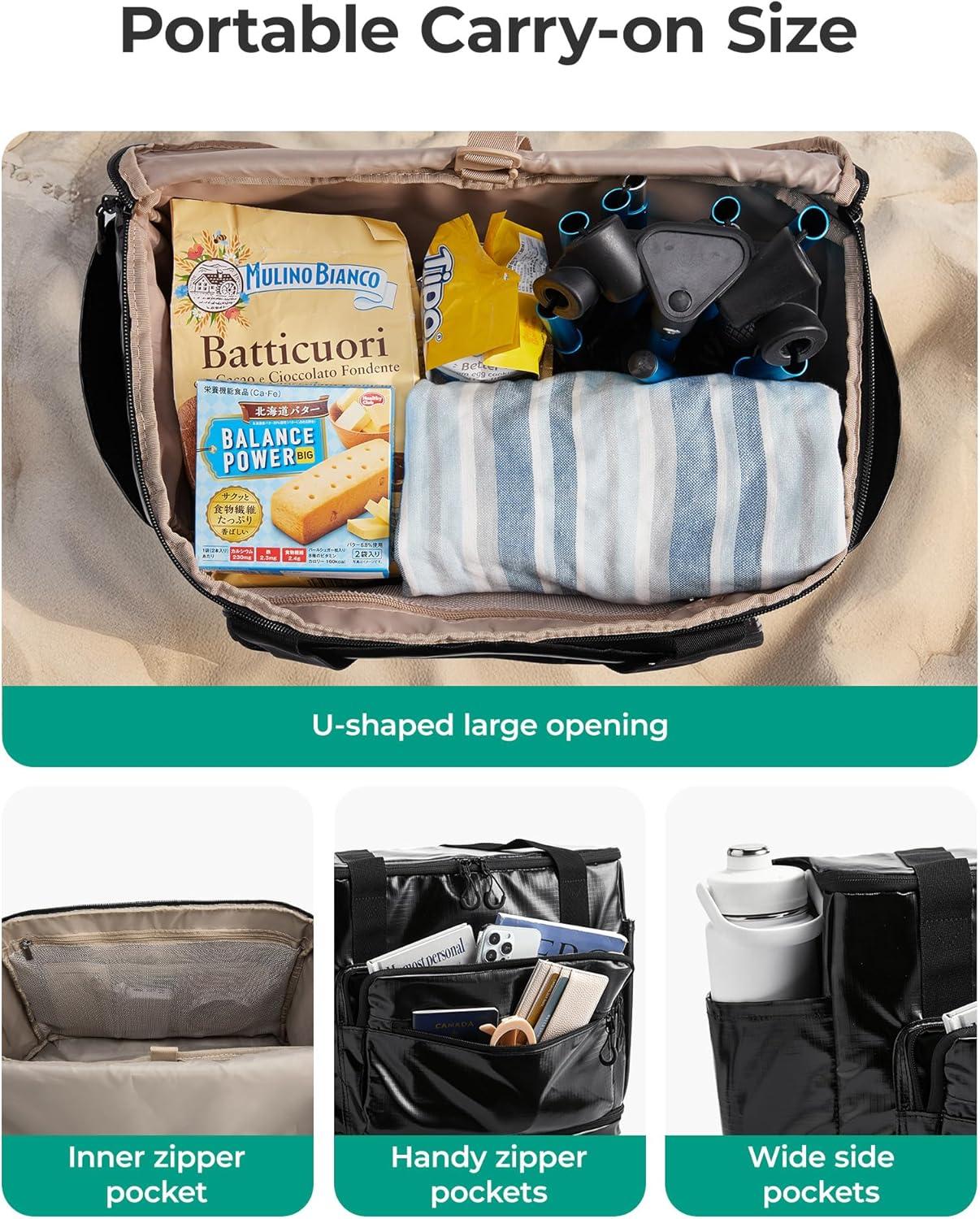 3-in-1 Versatile Design: As a rolling duffle bag, a daily tote bag, also a larger tote. Get more space from 30L to 48L by opening the bottom zipper. Transforms from a tote to wheeled carrier in seconds! Just unlock the handcart by releasing the snaps from the back of the base