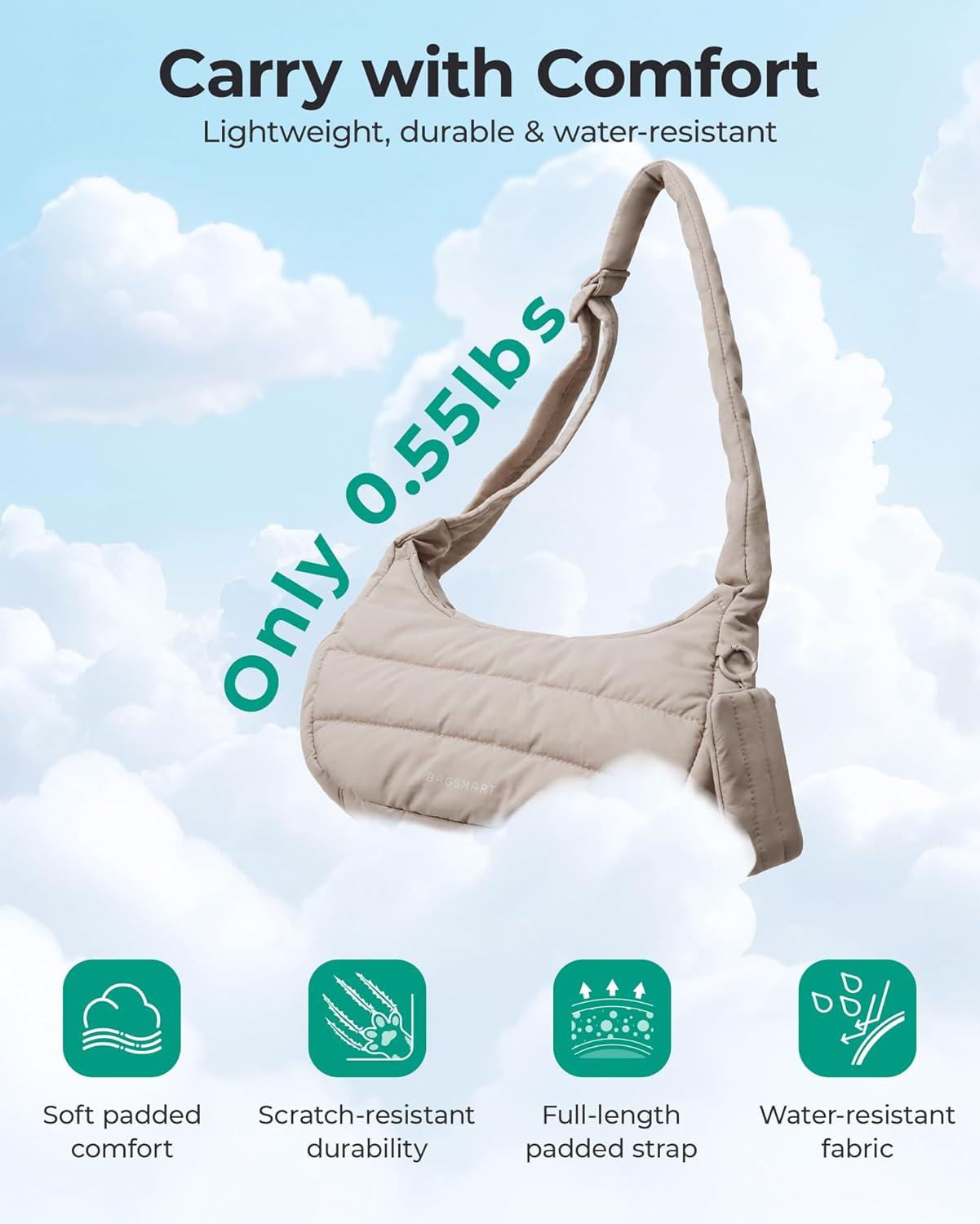 BAGSMART Shoulder Bag for Women Small Puffer Purses Crossbody Bag, Lightweight Fluffy Hobo Handbag Puffy Pouch(Pink)