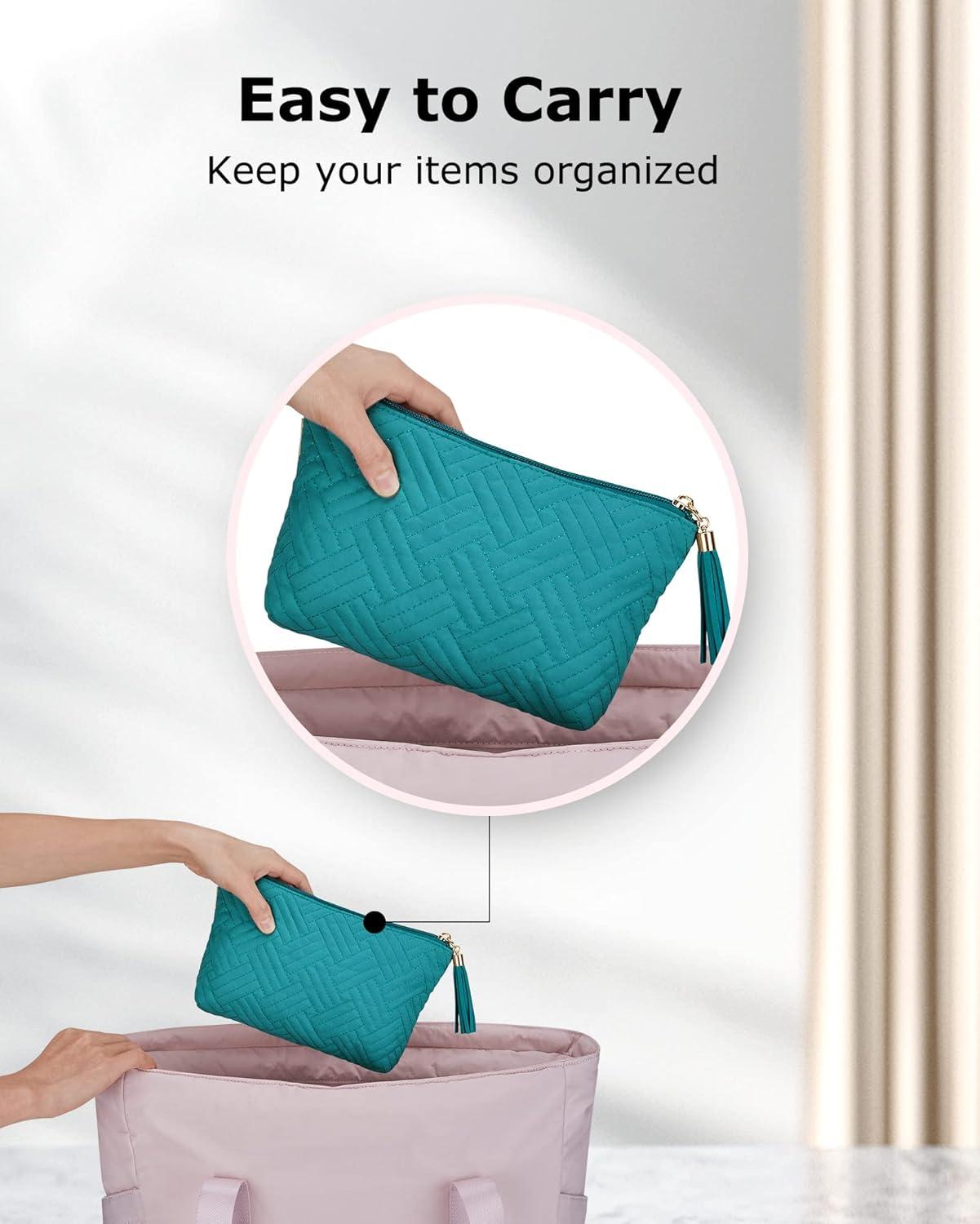 BAGSMART Small Cosmetic Bag, Elegant Roomy Makeup Bags,lipstick pouch,Zipper Pouch,Great Gifts for Women,Travel Waterproof Toiletry Bag Accessories Organizer Gifts (Pink-1 pcs)(Ⅸ-Teal-1pcs)