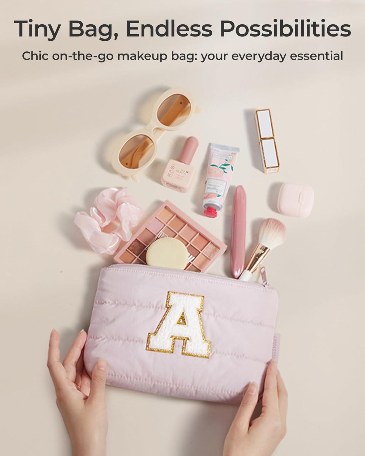 BAGSMART Small Cosmetic Bag, Elegant Roomy Makeup Bags,lipstick pouch,Zipper Pouch,Great Gifts for Women,Travel Waterproof Toiletry Bag Accessories Organizer Gifts (Pink-1 pcs)(Initial-A)