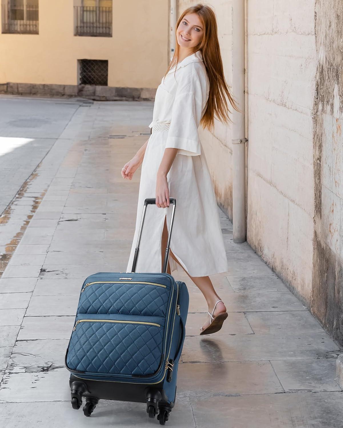 Getting Around Is Easy: The small carry on luggage comes with an ergonomic grade 3 aluminum tubular handle and is available in a variety of heights while minimizing wobble for your comfort. With 360° spinner wheels, suitcase for women is quiet and durable, making it easy to navigate airports, train platforms, sidewalks, and more. The womens luggage made of quilted durable polyester fabric offers a sturdier base that allows it to glide easily, even when fully loaded