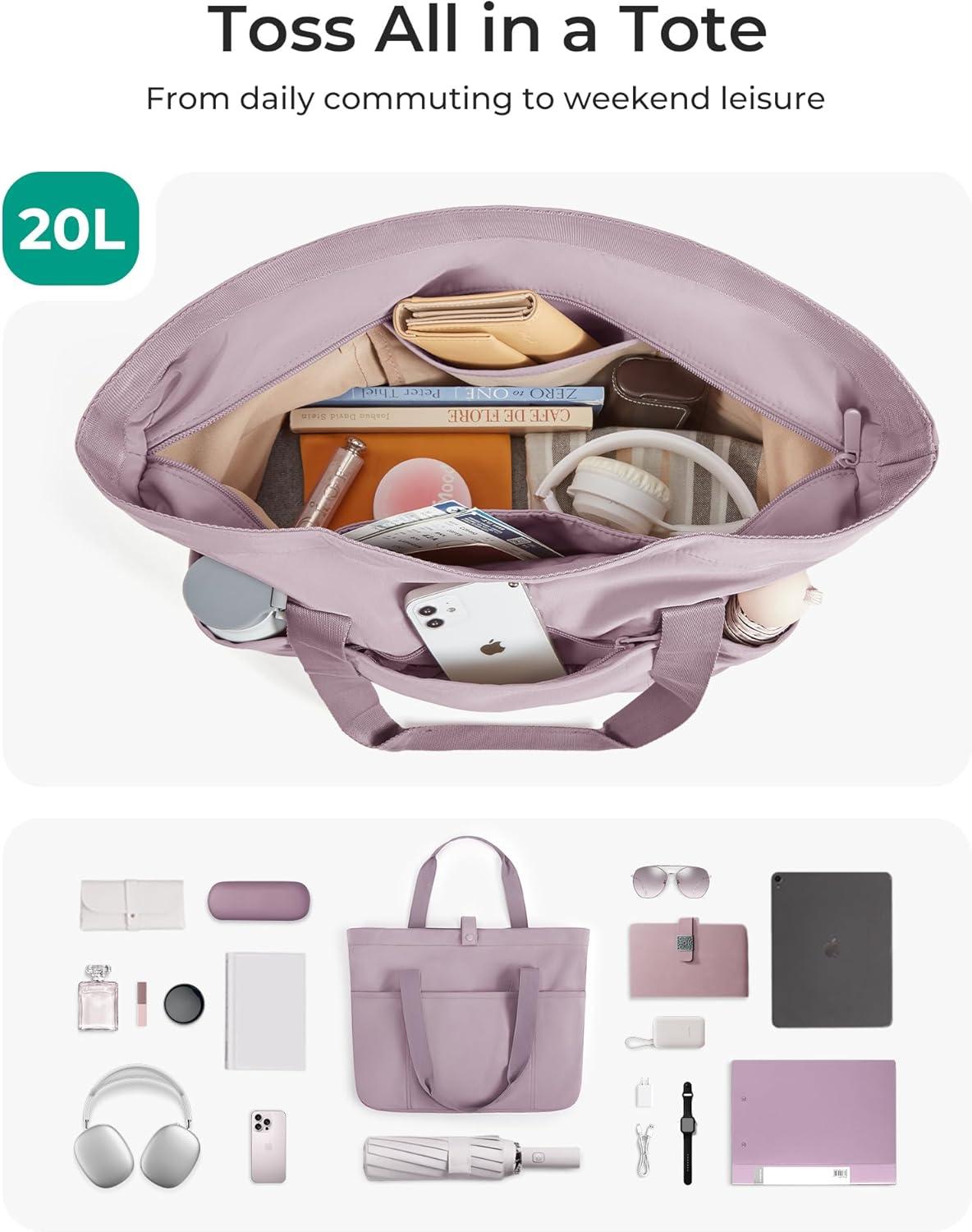 BAGSMART Tote Bag for Women, Foldable Tote Bag With Zipper Travel Large Shoulder Bag Handbag for Work-16.5”l X 6”wx 14”h(Purple-16.5”l X 6”wx 14”h)