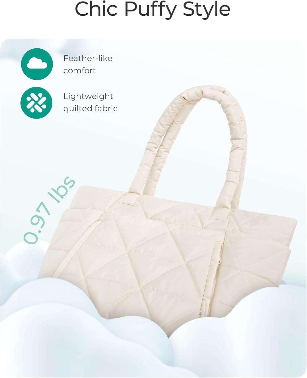 BAGSMART Tote Bag for Women, Puffy Tote Bag with Zipper, Large Quilted Shoulder Bag with Compartments for Travel, Work, Gym(Green)