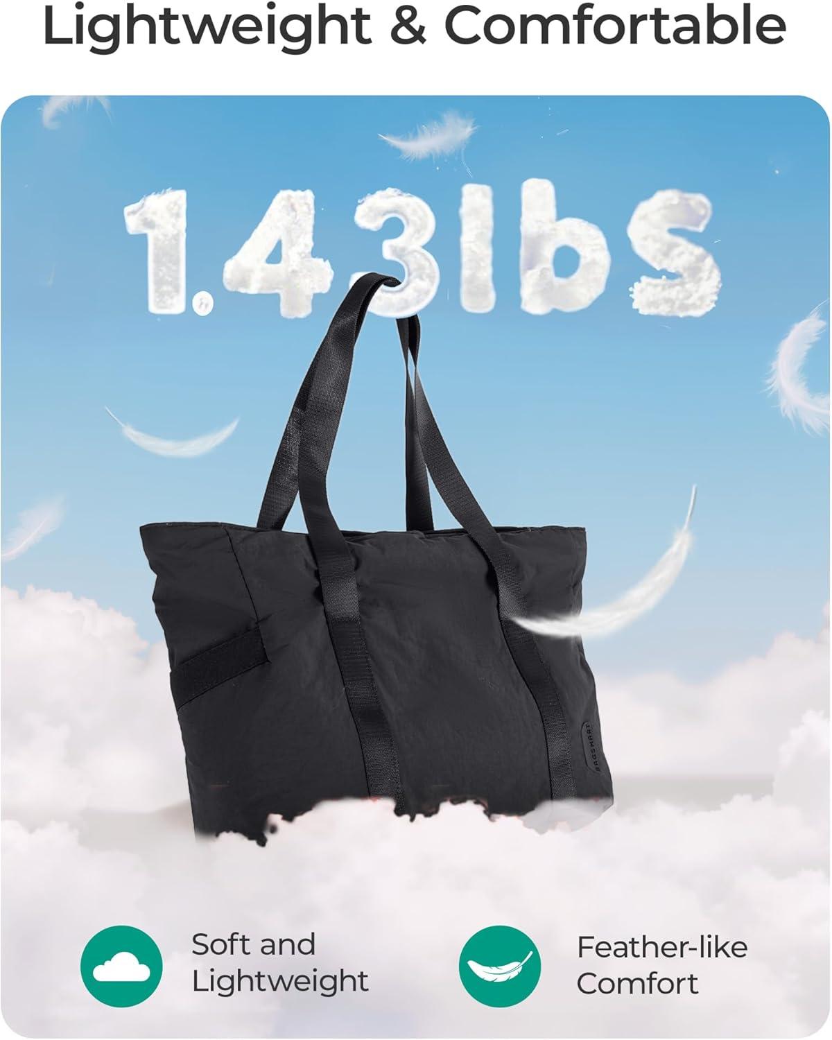 BAGSMART Tote Bag for Women, Tote Bag with Zipper Work Tote with Compartments Nurse Shoulder Hanbag for Travel, Gym(A-black-medium-28l)