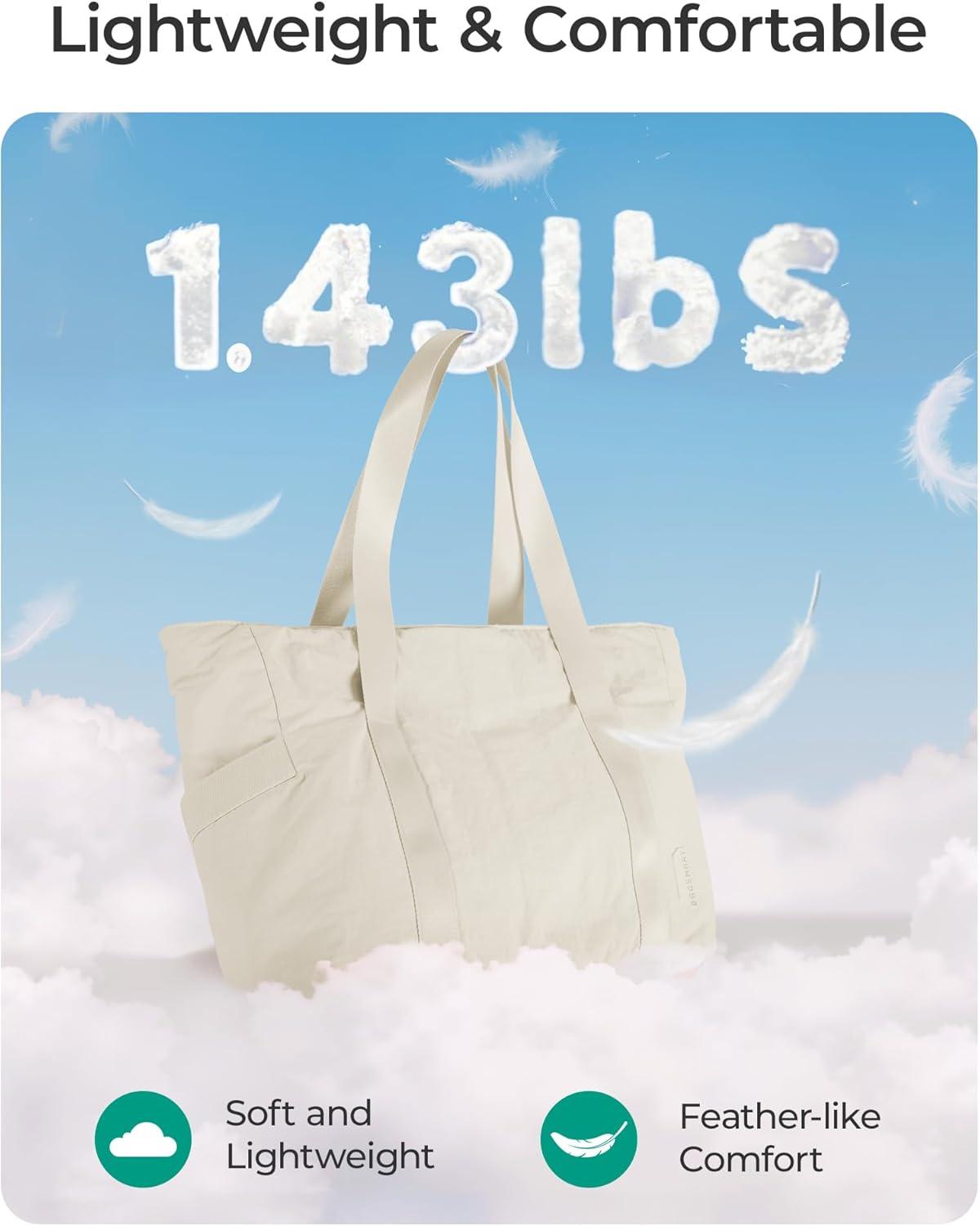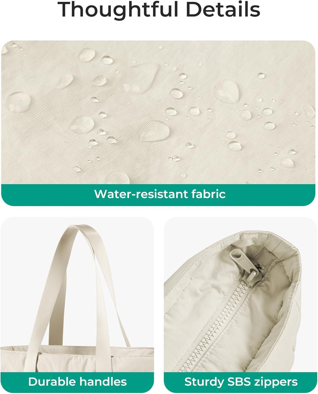 BAGSMART Tote Bag for Women, Tote Bag with Zipper Work Tote with Compartments Nurse Shoulder Hanbag for Travel, Gym(D-beige-medium-28l)