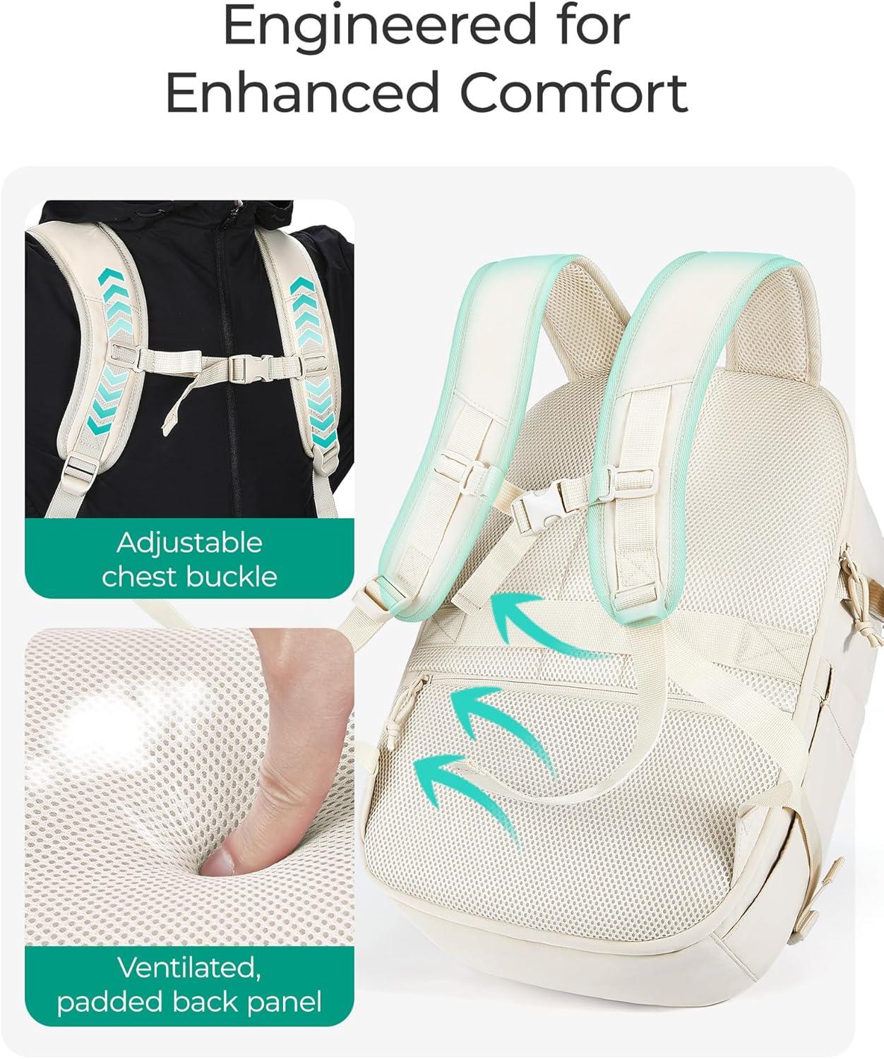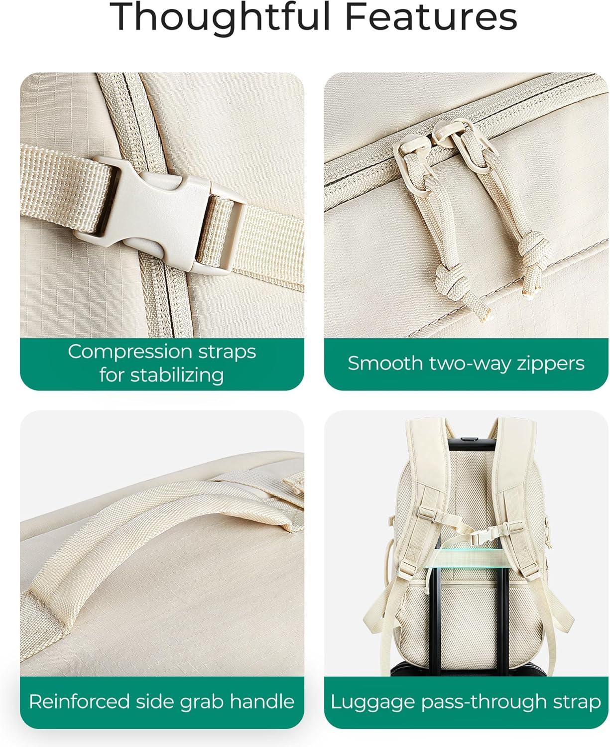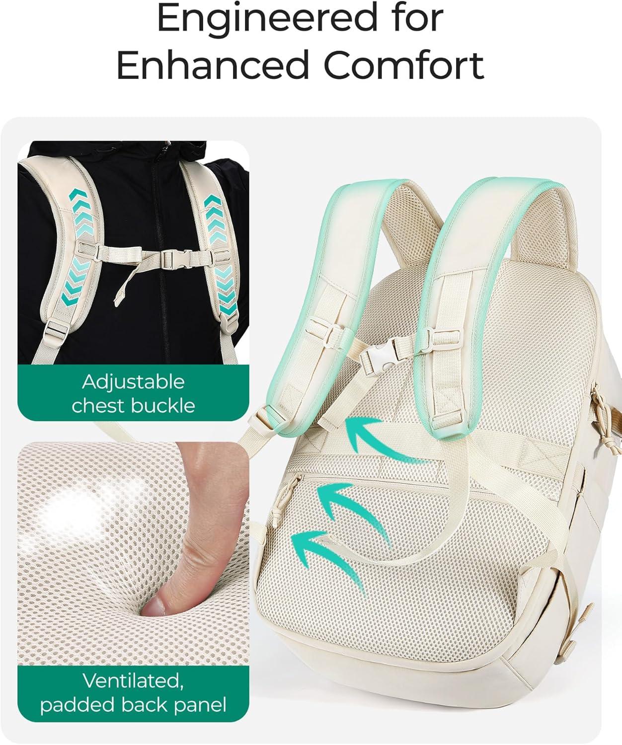 BAGSMART Travel Backpack Women, 15.6 Inch Carry On Backpack Flight Approved, TSA Approved Personal Item Travel Bag, Water Resistant Weekender Bag Luggage Daypack, Beige(Charcoal)