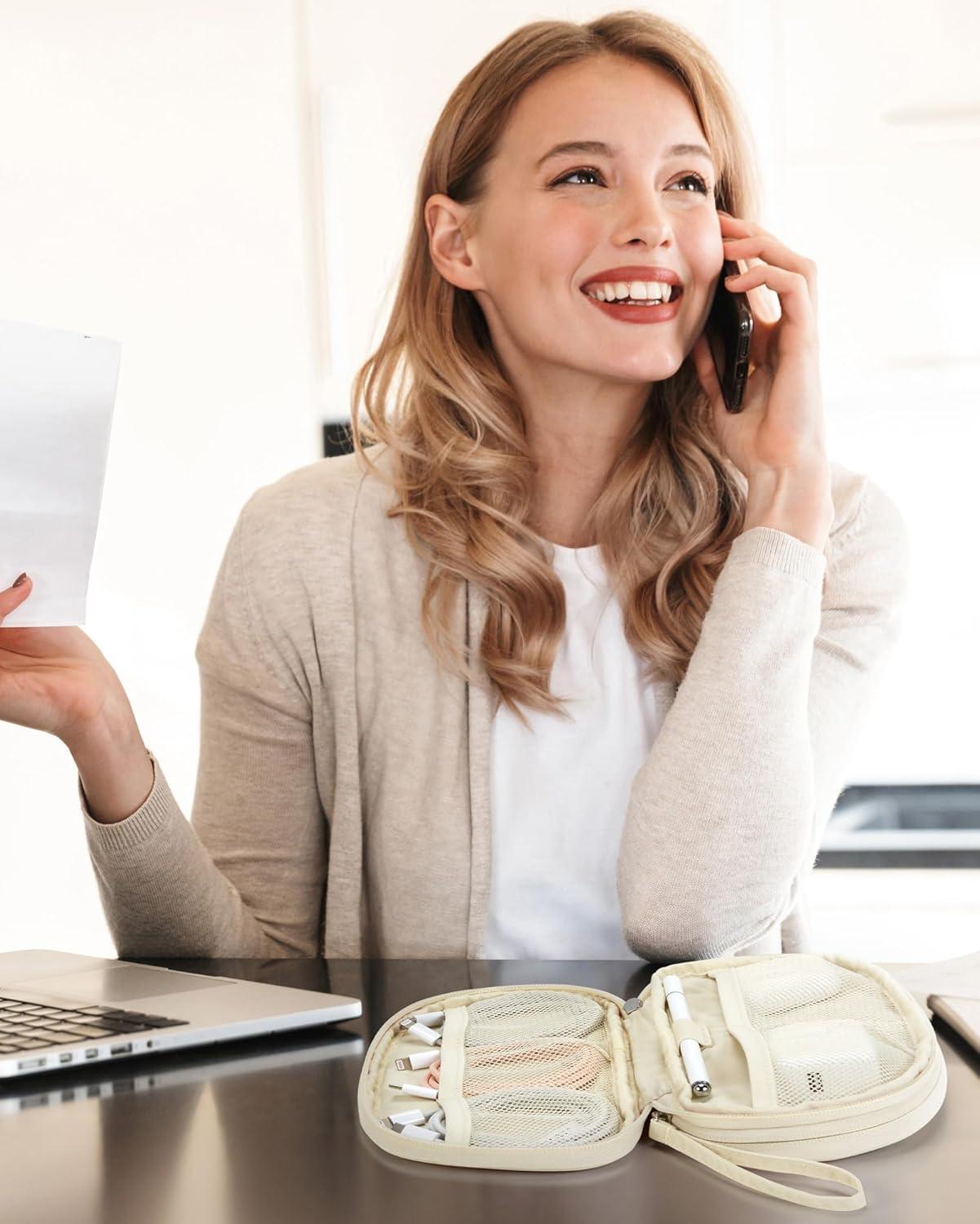 BAGSMART Travel Cord Organizer Electronics Case, Puffer Cable Organizer Bag Travel Essentials for Women, Small Tech Organizer Travel Case for Charger, Cable, Phone, Flash Drive Black(Double Layer Beige)