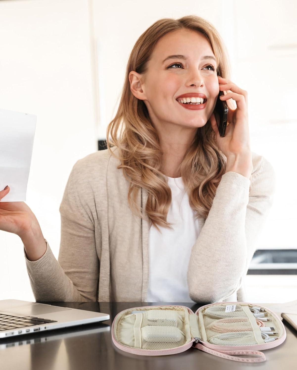 BAGSMART Travel Cord Organizer Electronics Case, Puffer Cable Organizer Bag Travel Essentials for Women, Small Tech Organizer Travel Case for Charger, Cable, Phone, Flash Drive Black(Single Layer Pink)