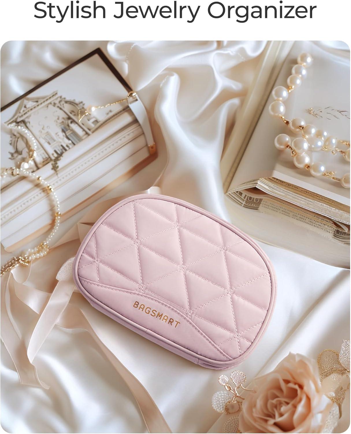 BAGSMART Travel Jewelry Case Jewelry Organizer Storage Roll Rings Necklaces Earrings Bracelets Brooches Watch Large Portable Light Pink(B–Light Pink)