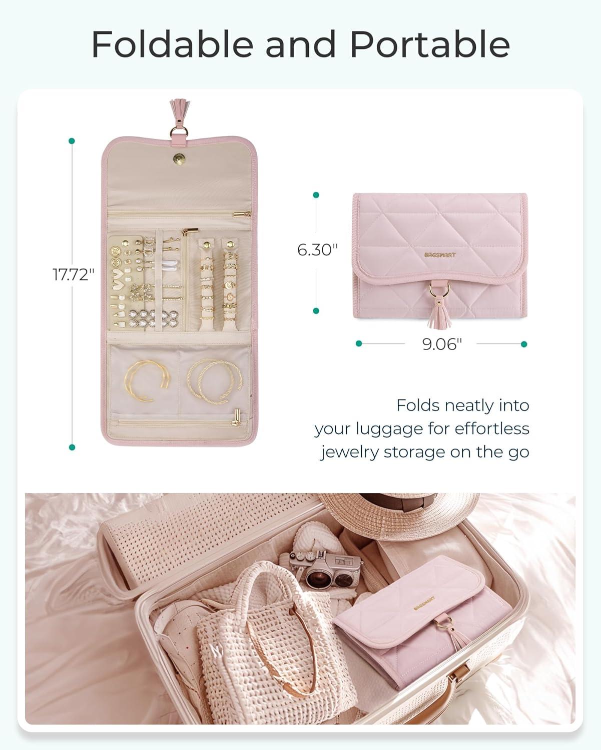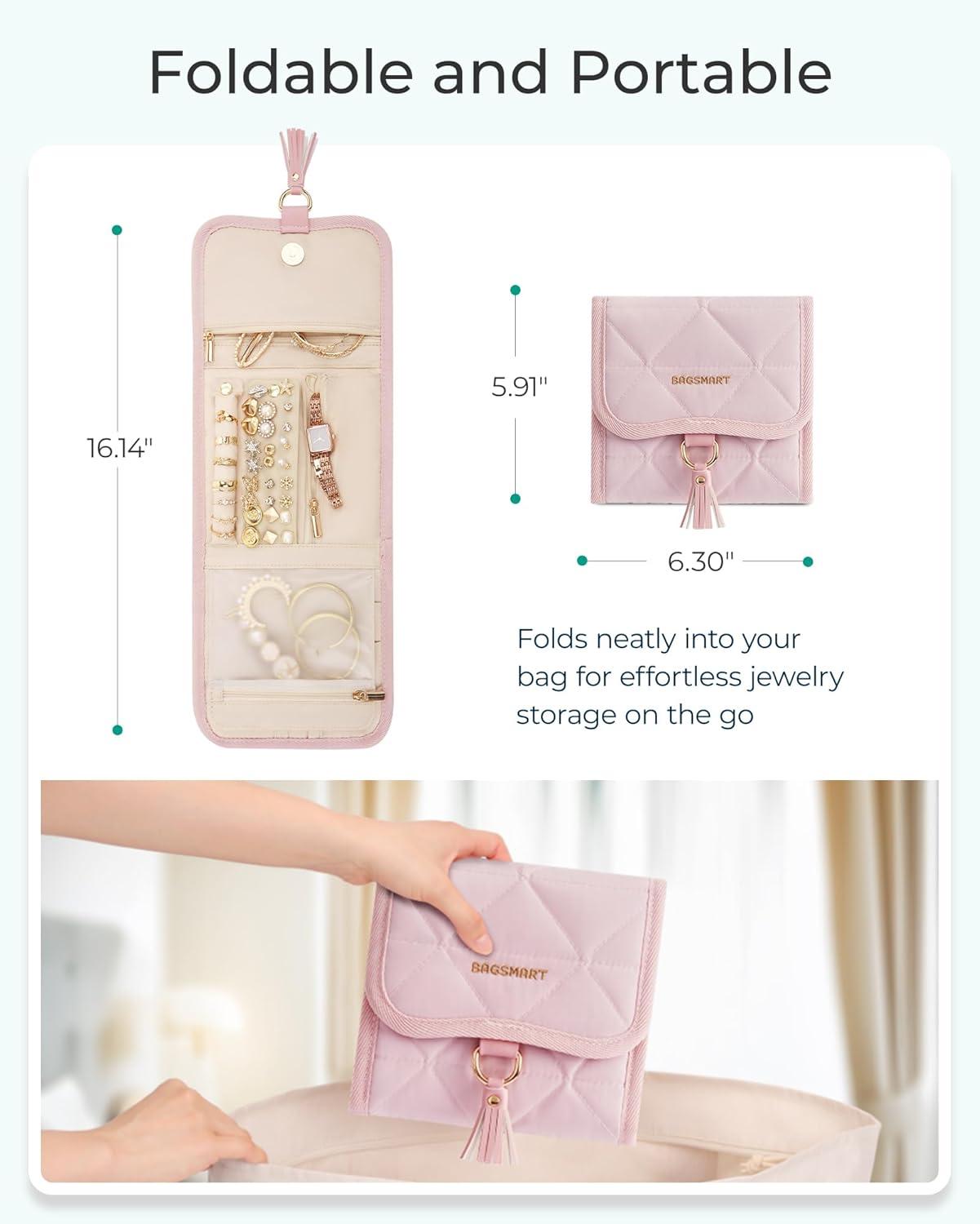Compact Size: With unfolded dimensions of 17.72 x 9.06 x 0.59 inches and weighing only 0.55 pounds, this jewelry organizer is super compact and perfect for travel. When folded, it shrinks to just 6.30 x 9.06 inches, making it easy to slip into your suitcase or backpack