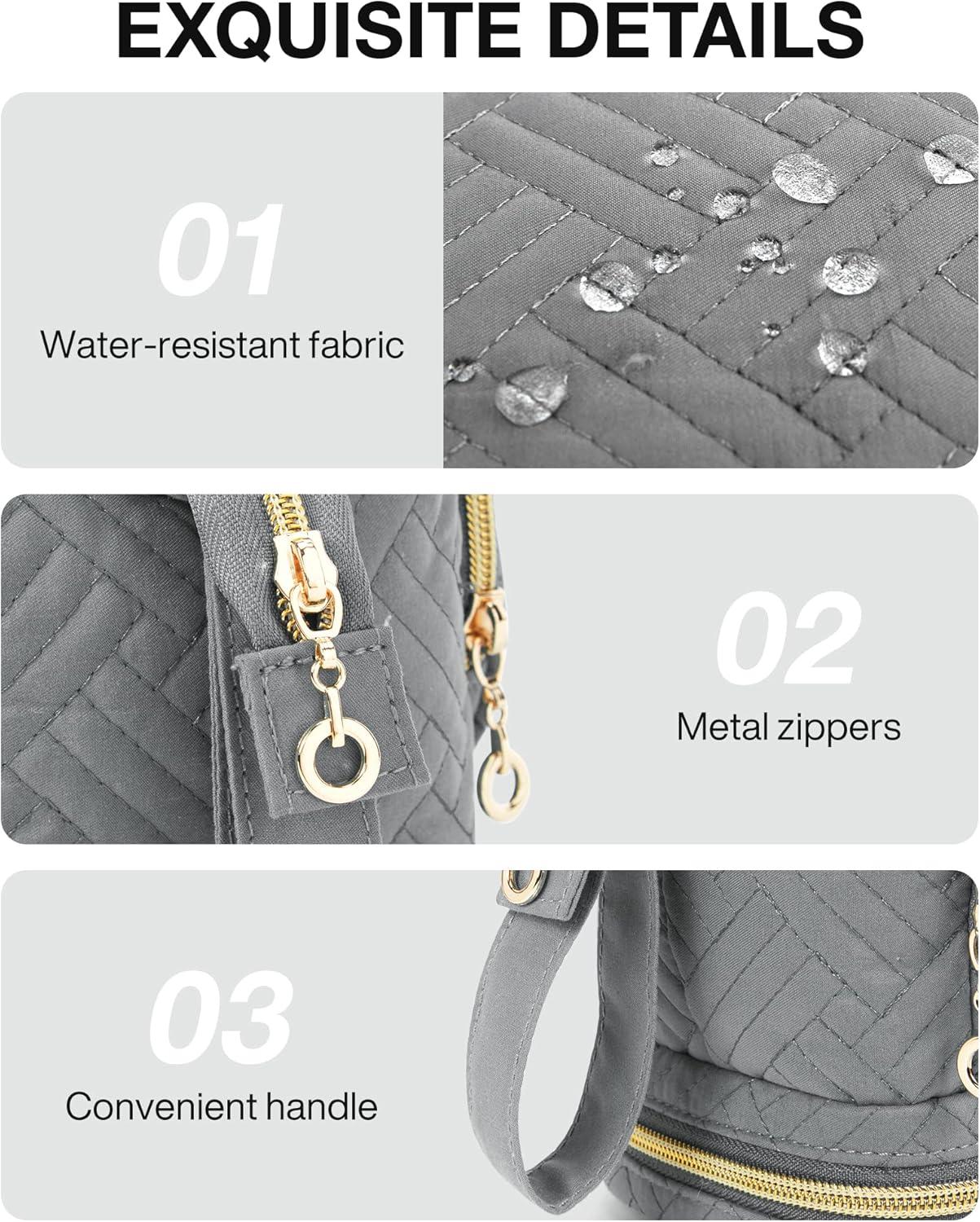 BAGSMART Travel Makeup Bag, Cosmetic Bag Make Up Organizer Case,Large Wide-open Pouch for Women Purse for Toiletries Accessories Brushes(P-2 Layers- Grey)
