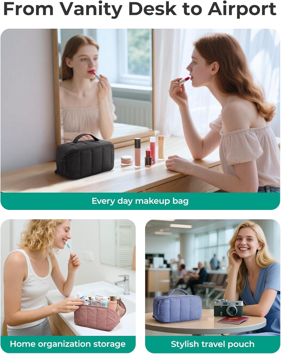Full-Open Design for Easy Access: Experience ultimate convenience with our makeup bag's full-open design. This feature allows you to effortlessly view and reach your cosmetics and toiletries. No more digging through a cluttered bag—simply unzip and find what you need in seconds, making your daily beauty routine smoother and more efficient.