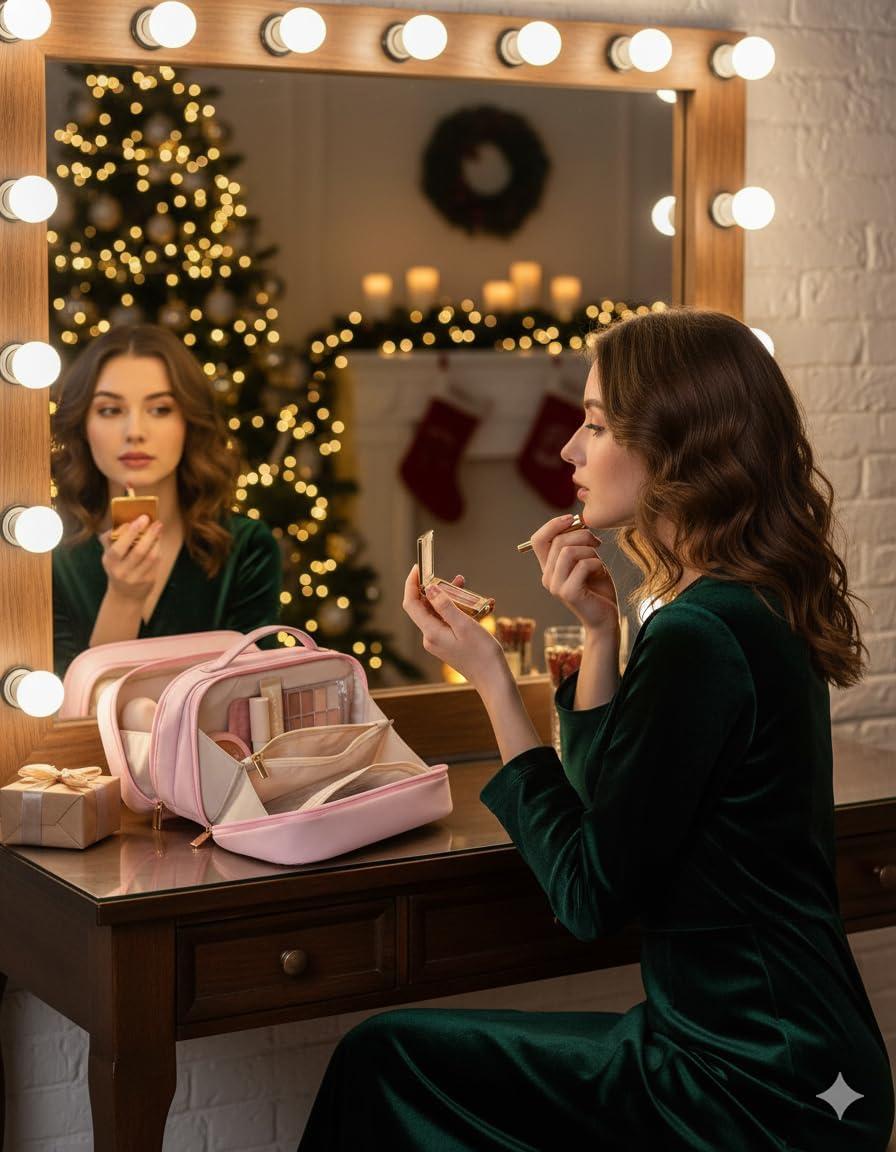 【Versatility】With an elegant and charming appearance and available in 3 colours, this large makeup bag serves not only as a travel companion but also as a versatile toiletry bag, travel wallet, tech accessory organizer, travel accessory bag, or daily storage pouch. These cosmetic bags for women are perfect gifts for Women's Day, Valentine's Day, birthdays, anniversaries, Mother's Day, and other holidays.