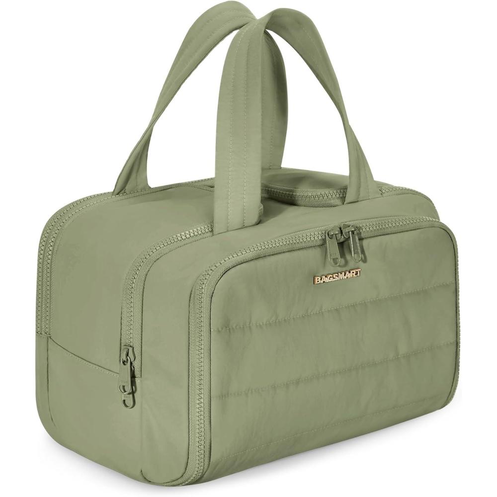 BAGSMART Travel Toiletry Bag, Crush Toiletry Bag for Women, Wide-open Puffy Toiletry Bags for Traveling, Large Travel Cosmetic Makeup Bag Organizer for Accessories,Toiletrie, Blue(e-Army Green)