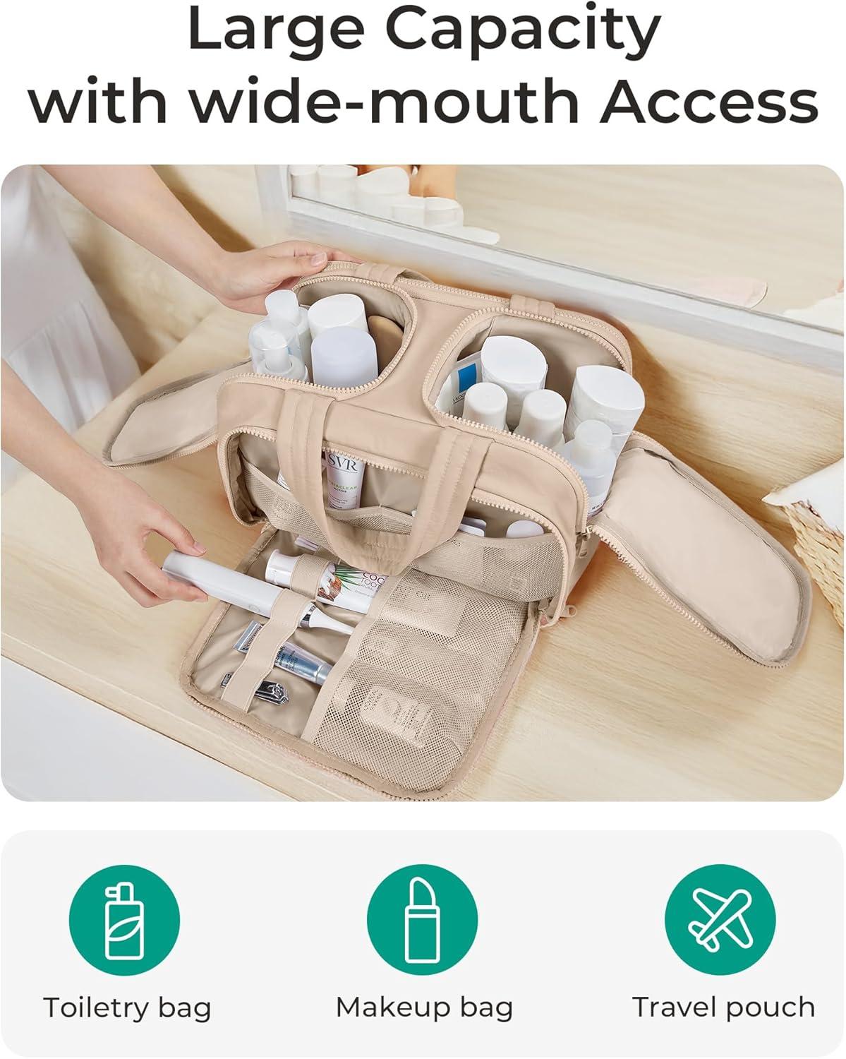 Easy Access and Keep Upright : Full opening and not piling up for easy access to items. Double side full open design of travel bag for toiletries keeps cosmetic bottles and toiletries can stand upright in the middle compartment. Avoid leakage during transit