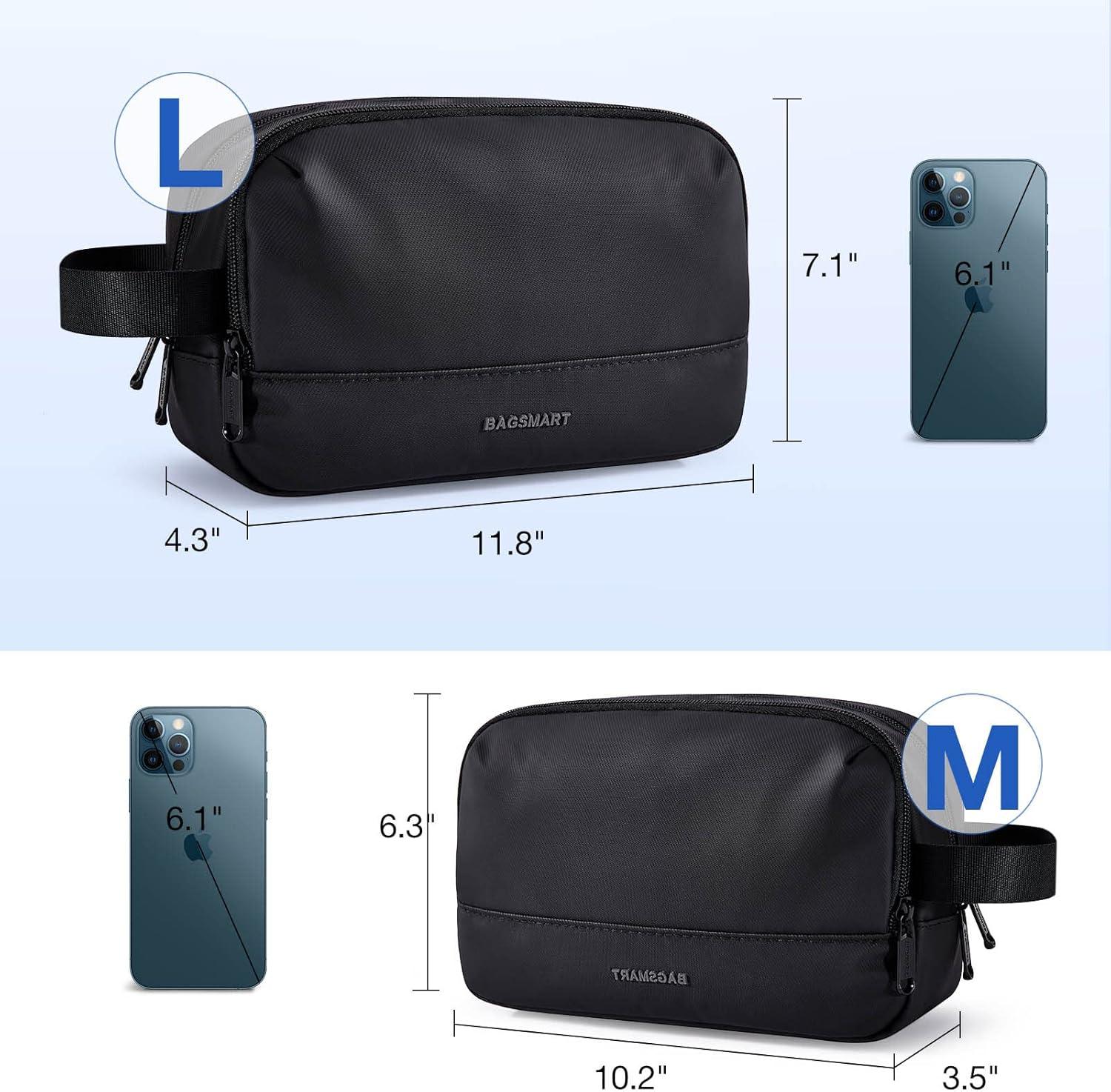 BAGSMART Travel Toiletry Bag for Men, Dopp Kit Water Resistant Shaving Bag for Toiletries Accessories, Black-Medium(Black)
