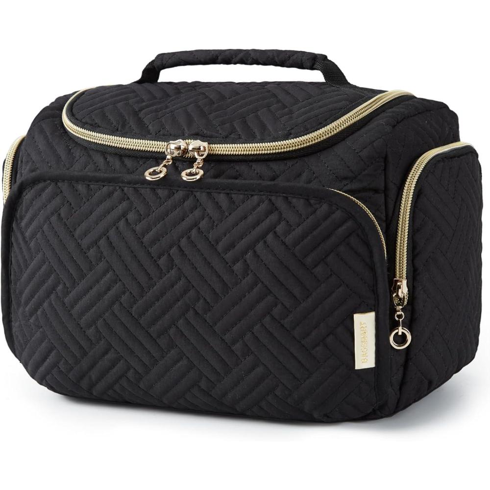 BAGSMART Travel Toiletry Bag for Women, Cosmetic Bag Makeup Bag Organizer with Handle, Travel Bag for Toiletries, Travel Accessories, Full Sized Container(Black)