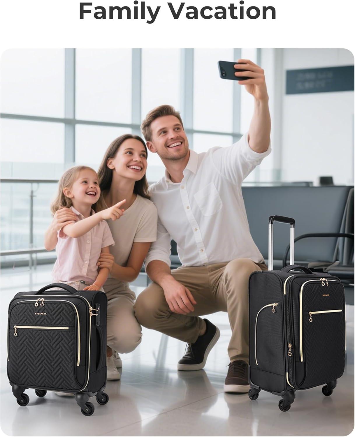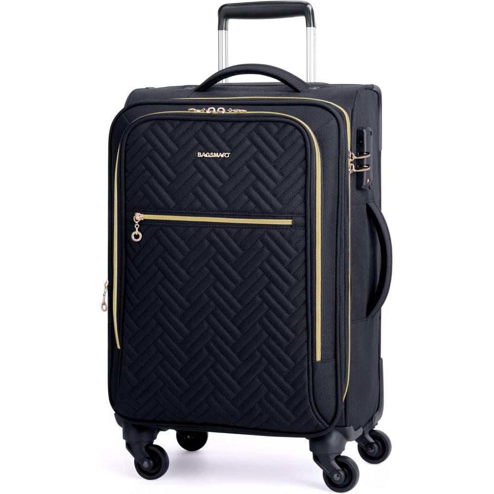 BAGSMART Underseat Carry On luggage Airline approved, 16-inch Softside Underseater Travel Suitcase with Spinner Wheels Lightweight Overnight Bag Small Rolling Carry-on for Women Men Weekender,Black(Black)