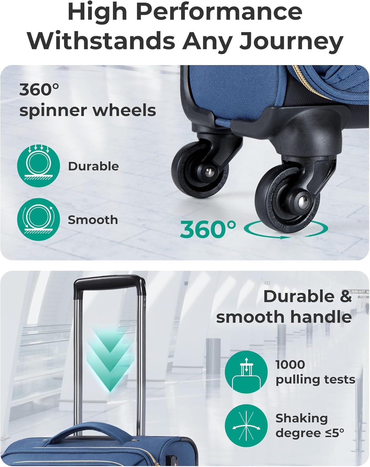 Easy to Maneuver: Featuring 360° spinner wheels, this under seat suitcase guarantees smooth gliding on any surface, even when fully packed, ensuring mobility. The extension handle ensures seamless and long-lasting. 2-step ergonomic high-grade aluminum tube handle can adjust to multiple heights while minimizing wobble, which offers easy mobility. Additionally, sturdy top and side handles offer convenient lifting and carrying options for effortless maneuvering